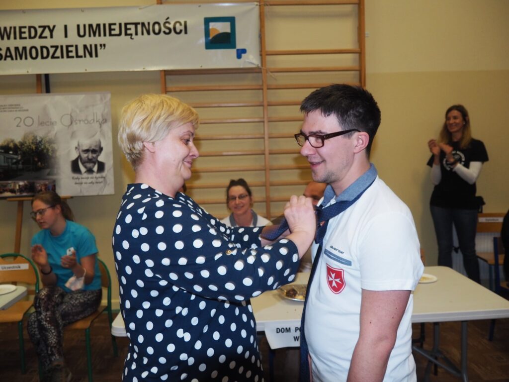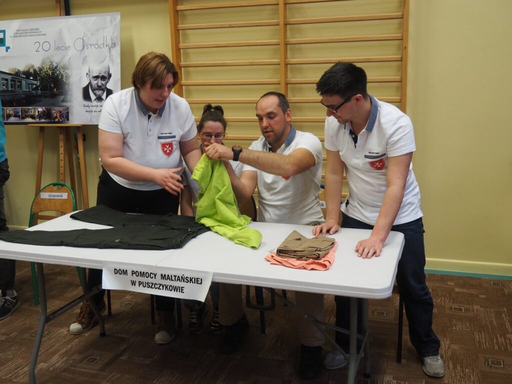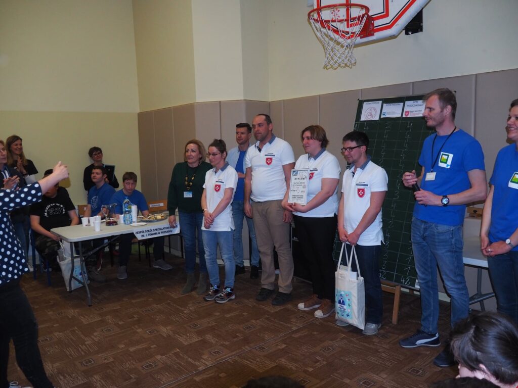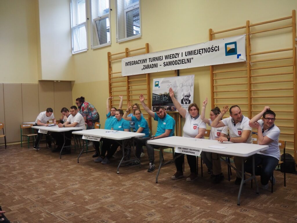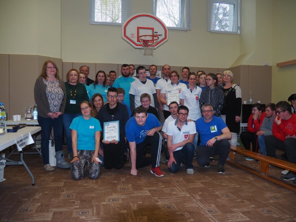 W dniu 29 marca wzięliśmy udział w IV Integracyjnym Turnieju p. n. ZARADNY – SAMODZIELNY zorganizowanym przez Specjalny Ośrodek Szkolno- Wychowawczy im Janusza Korczaka w Mosinie. Konkurencje przygotowane przez nauczycieli ośrodka dostarczyły nam mnóstwo wrażeń, a adrenalina szybowała do góry. Przyszło nam zmagać się w takich konkurencjach jak: dobieranie ubioru adekwatnie do pory roku, wkręcanie wkrętów w drewniany klocek, wieszanie prania, odliczanie odpowiedniej kwoty z drobnych pieniędzy, adresowanie kopert, wbijanie gwoździe na czas, łączenie skarpetek w pary, zapinanie guzików przy koszuli. Najtrudniejszą konkurencją, która jednocześnie okazała się rozstrzygającą było wiązania krawata. Zapewne jeszcze przez kilka dni będą nam się śniły po nocach te krawaty. Na szczęście stres nas „nie zjadł…” i wróciliśmy do naszej placówki z 1 miejscem.