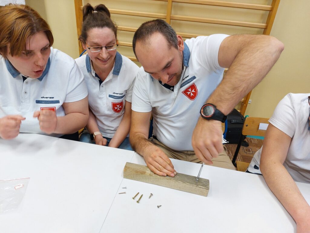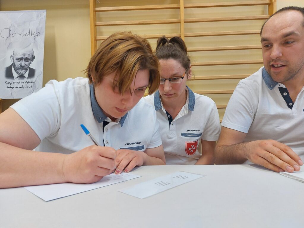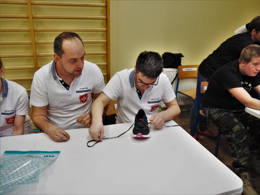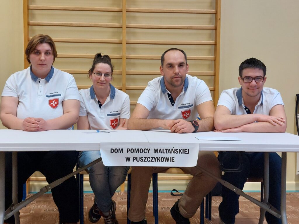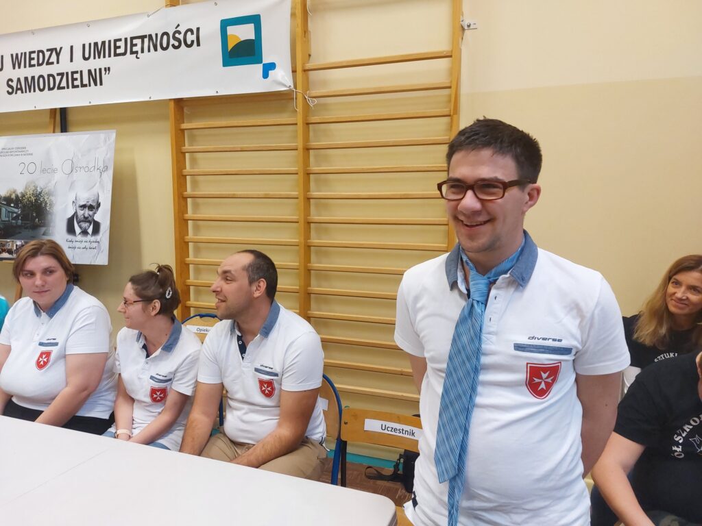W dniu 29 marca wzięliśmy udział w IV Integracyjnym Turnieju p. n. ZARADNY – SAMODZIELNY zorganizowanym przez Specjalny Ośrodek Szkolno- Wychowawczy im Janusza Korczaka w Mosinie. Konkurencje przygotowane przez nauczycieli ośrodka dostarczyły nam mnóstwo wrażeń, a adrenalina szybowała do góry. Przyszło nam zmagać się w takich konkurencjach jak: dobieranie ubioru adekwatnie do pory roku, wkręcanie wkrętów w drewniany klocek, wieszanie prania, odliczanie odpowiedniej kwoty z drobnych pieniędzy, adresowanie kopert, wbijanie gwoździe na czas, łączenie skarpetek w pary, zapinanie guzików przy koszuli. Najtrudniejszą konkurencją, która jednocześnie okazała się rozstrzygającą było wiązania krawata. Zapewne jeszcze przez kilka dni będą nam się śniły po nocach te krawaty. Na szczęście stres nas „nie zjadł…” i wróciliśmy do naszej placówki z 1 miejscem.