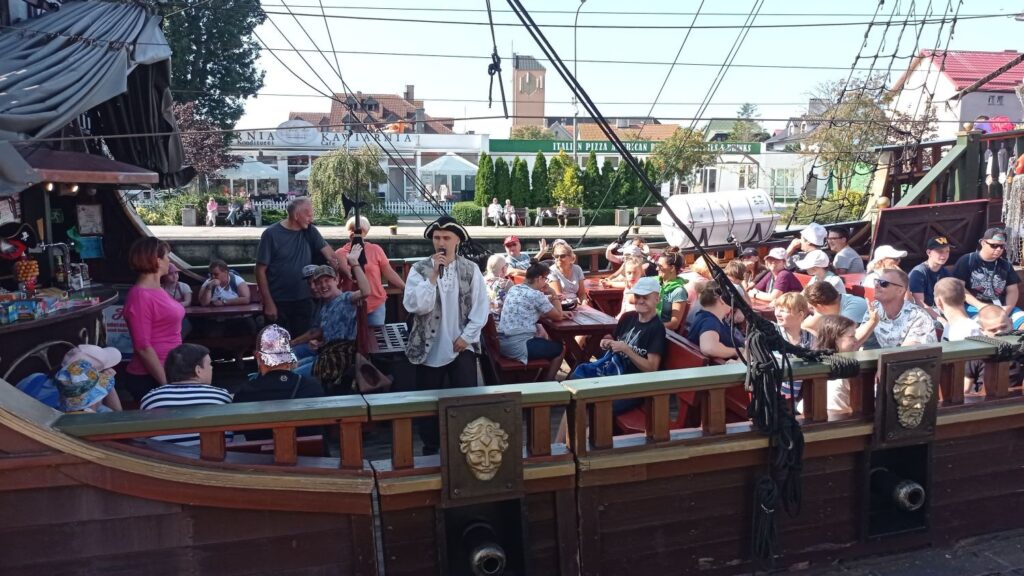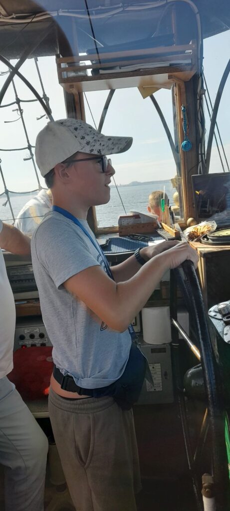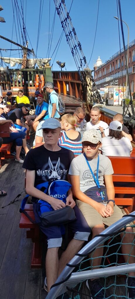 A teraz trochę konkretów. Na pogodę nie możemy narzekać. Deszcz, jeśli już się pojawia, to rzeczywiście przelotnie. Jest ciepło, codziennie robimy wypad na oddaloną o 100 metrów od ośrodka plażę. Śmiałkowie decydują się na morską kąpiel. Większość korzysta za to z uroków kąpieli w Parku Wodnym. Chodzimy codziennie do Parku Wodnego. Godzina mija naprawdę szybko: baseny (o różnej głębokości), rwąca rzeka, wodne bicze, zjeżdżalnie, a na dodatek słona woda…. a jak woda to tradycyjny rejs statkiem „Unicus”. Nie zabrakło odważnych śmiałków: Jakuba, Bartka, Alana, Kamila, Jędrzeja, Weroniki, którzy w tym roku zdecydowali się na przejęcie sterów na pełnym morzu.