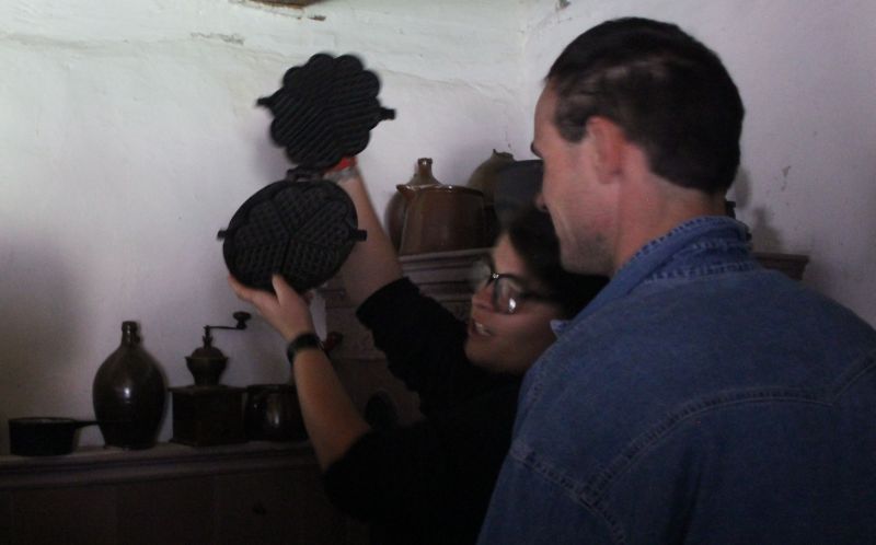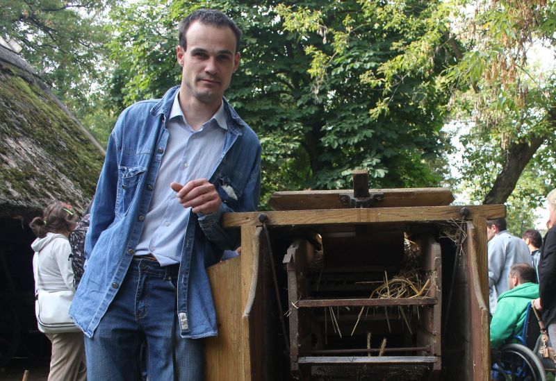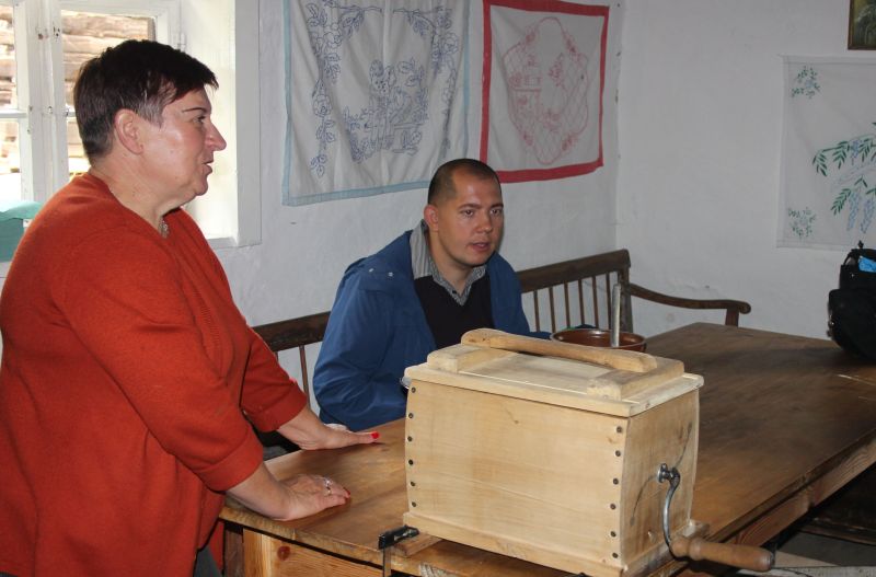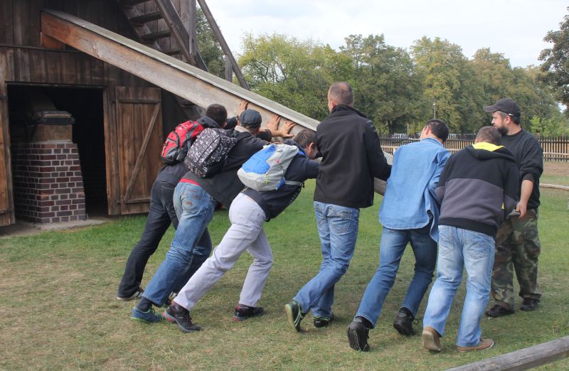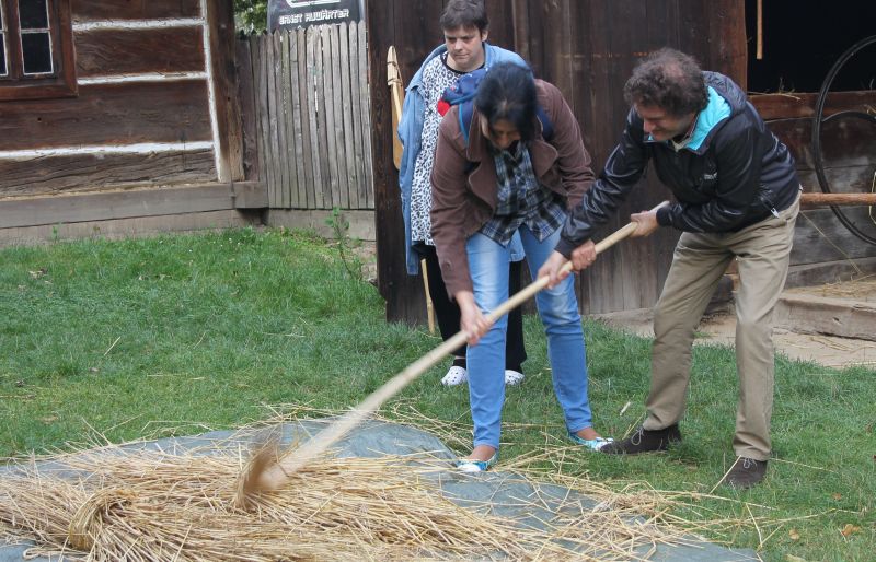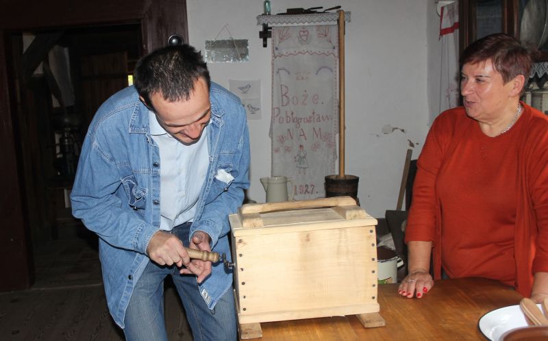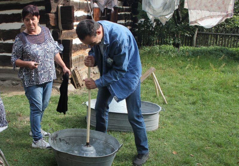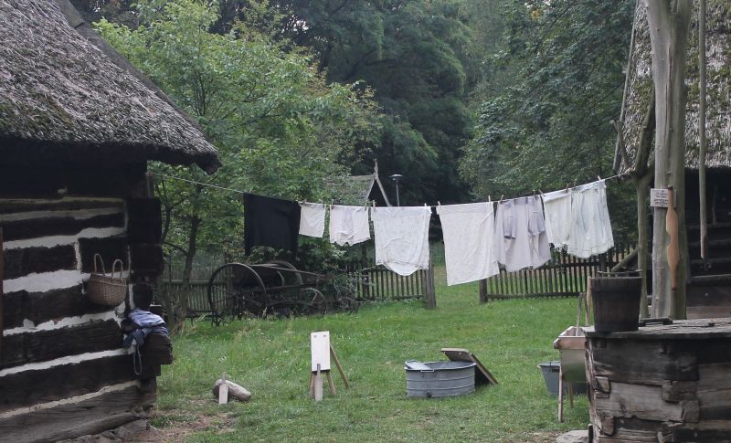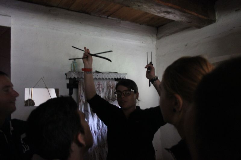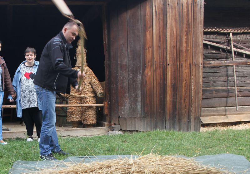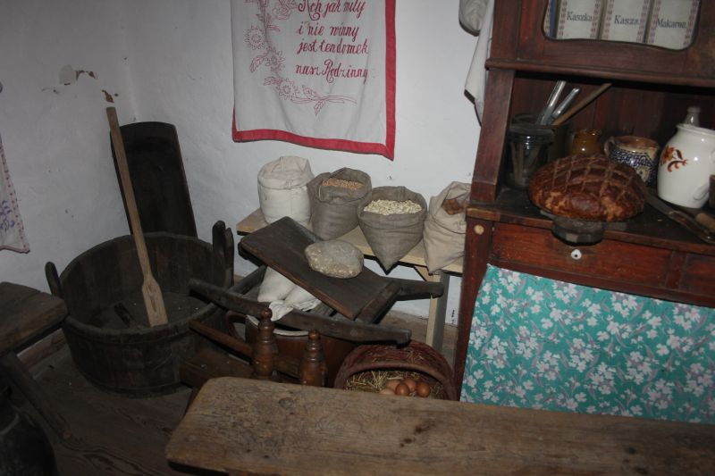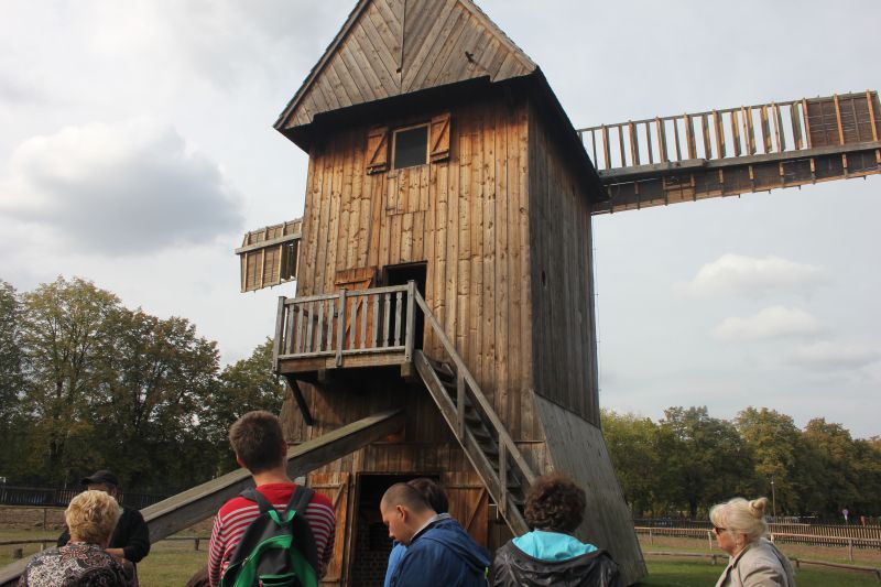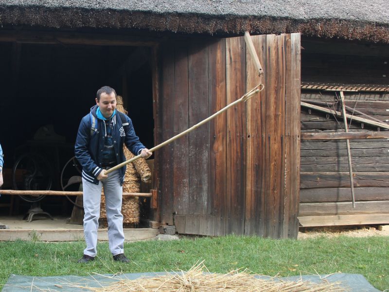 Jednym z najstarszych budynków znajdujących się w Muzeum jest osiemnastowieczna karczma, przeniesiona z Solca Nowego. W izbach karczmarza widzieliśmy żeliwne urządzenie do pieczenia gofrów z przepisem na górnej klapie, mikser na korbkę, lokówkę do włosów, którą rozgrzewano na piecu oraz specjalne urządzenie do zdejmowania butów. Na polanie przed karczmą, w ramach zajęć edukacyjnych zapoznaliśmy się z techniką dawnego prania, mielenia mąki oraz młócenia zboża cepem. Zwiedzanie tego niesamowitego Skansenu zakończyła eskapada do młyna. Mało kto z nas wiedział, że cały młyn można obrócić, w zależności od kierunku wiatru. I oczywiście nie omieszkaliśmy tego praktycznie sprawdzić!!!