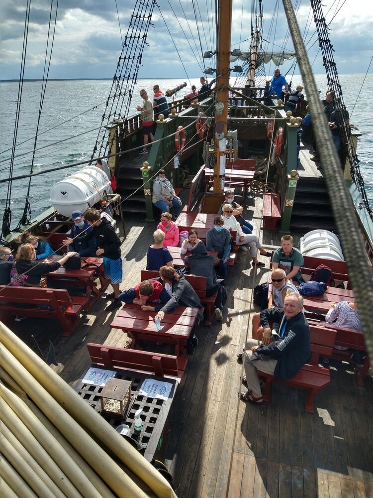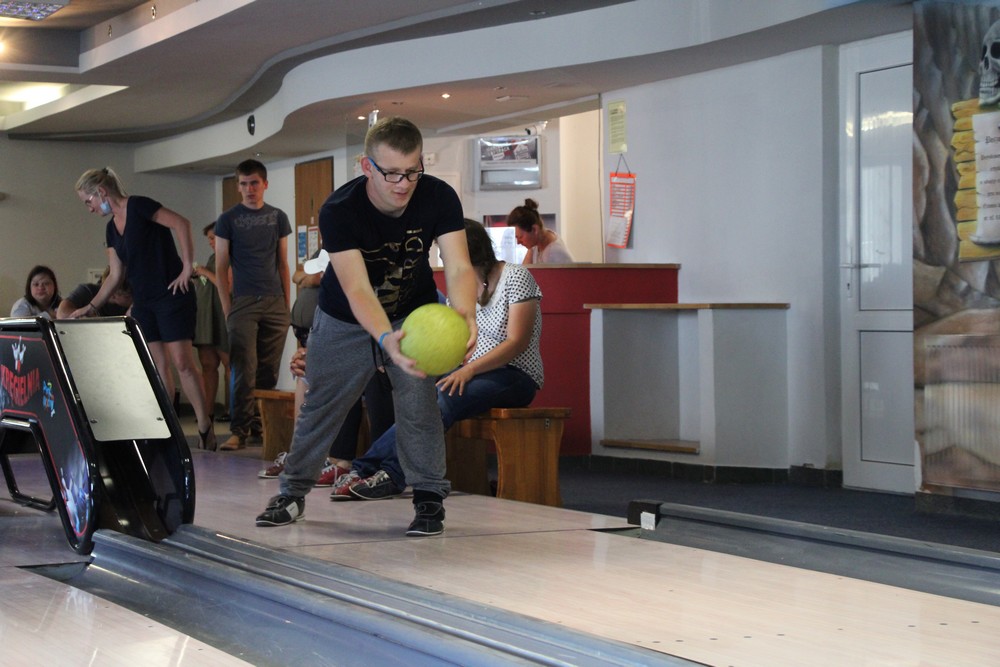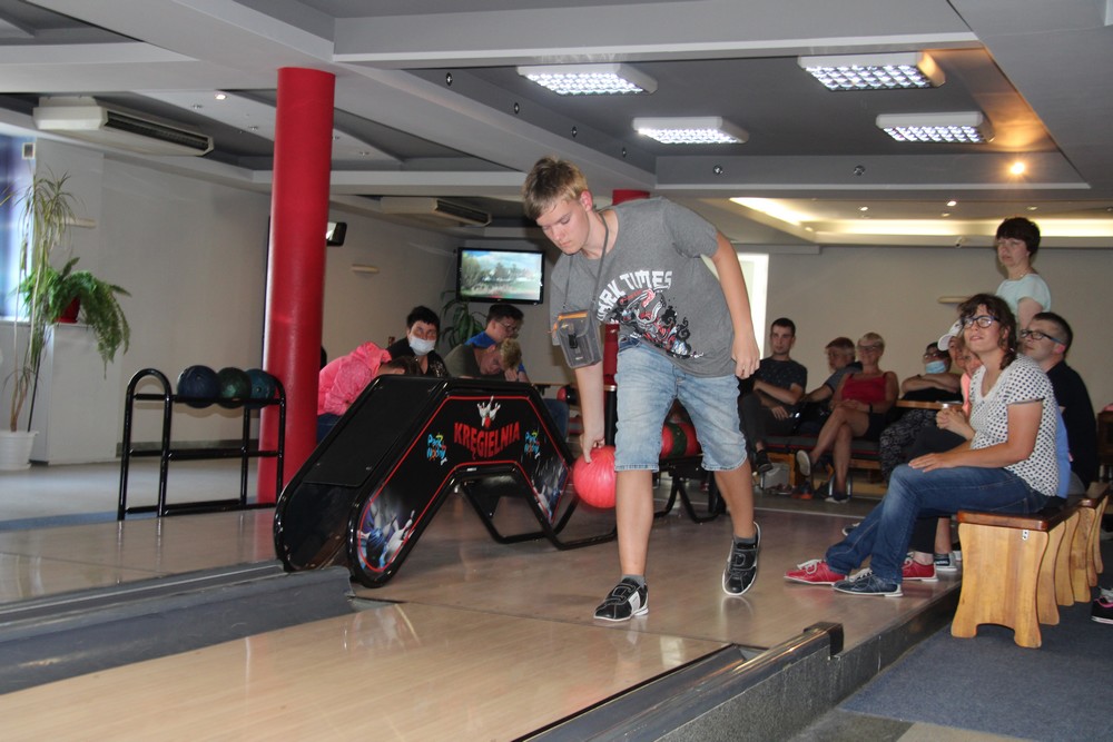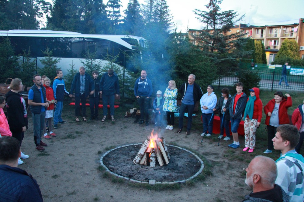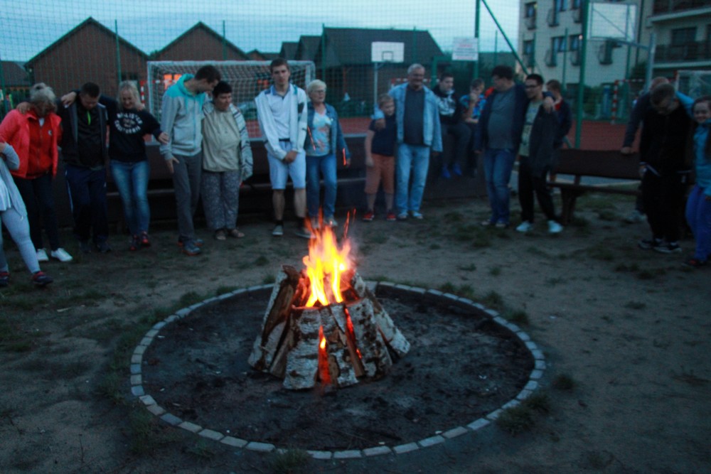 Co prawda pogoda Nas nie rozpieszczała, lecz nie pokrzyżowała planów na tyle, aby zrezygnować z kilku dni spędzonych na plaży, corocznego rejsu statkiem.Odmiennie w stosunku do roku ubiegłego, zdecydowaliśmy się na zmianę z „Króla Eryka I” na „Unicusa”. Na szczęście zmiana okrętu nie odstraszyła kilku Naszych śmiałków, Dawida, Oskara, Mateusza, Bartka oraz Rafała, którzy i w tym roku zdecydowali się na przejęcie sterów na pełnym morzu. Nie ma obozu bez integracji, a jak integracja to tylko w rytmach disco, których w tym roku nie zabrakło,gdyż mogliśmy się wytańczyć na dyskotece dwukrotnie. Ta druga pod koniec obozu była o tyle wyjątkowa, gdyż była okazją do podsumowania całego obozu, powspominania pierwszych wyjazdów do Darłówka, wręczenia pamiątkowych dyplomów uczestnictwa. Miłym zaskoczeniem okazały się pamiątkowe kubki dla uczestników z ich zdjęciem portretowym. Mamy nadzieję, że herbata wypijana z takiego kubka, pozwoli wszystkim wracać w myślach do tamtego miejsca i tamtych wspomnień, kiedy tylko najdzie Nas ochota. Wspominając wieczorne atrakcje warto nadmienić o wspólnym ogniskowaniu, kiedy to był czas na piosenki takie jak „Stokrotka” czy „Plastikowa biedronka” itp. W tym roku przy ognisku czuliśmy się jak na jakimś all inclusive, za sprawą syto zastawionego stołu, na którym królowała kiełbasa, karkówka oraz kaszanka. Kto był z Nami w roku ubiegłym, zapewne pamięta bardzo energiczny pląs „Płyną statki z bananami w siną dal”, który staraliśmy się w tym roku powtórzyć, lecz z większą precyzją oraz szybkością. Gdyby tego było mało, w tym roku poznaliśmy kolejny z kategorii ruchowych – energicznych, „La pik, za czok… . Co prawda na koniec ogniska zabrakło piosenki „Ogniska już dogasa blask”, lecz dzięki atmosferze na nim panującej, mogliśmy poczuć się jak w harcerskiej wspólnocie, gdzie przeważał uśmiech na twarzy oraz wzajemna pomoc. Jako że był to obóz sportowy, naszym planom codziennie towarzyszyły zajęcia na basenie oraz spacery rekreacyjne w najróżniejsze zakątki Darłówka oraz okolic. Udało nam się dotrzeć pieszo do Darłowa, rowerem 4 osobowym w kierunku Jarosławca. Nie ominął nas też spacer ścieżką przyrodniczą w Darłówku Zachodnim przy blasku zachodzącego słońca. Pewnego deszczowego popołudnia za sprawą Pana Tomka oraz Pana Mikołaja mogliśmy stanąć do rywalizacji niczym na najbardziej profesjonalnym turnieju gry w boccie. Były okrzyki radości ale i złości, lecz wszystkich w dobry nastrój wprowadzali dopingujący koledzy i koleżanki. Nie ma co się dziwić, że po tak zawziętej walce w boccie, postanowiliśmy wybrać się na kręgielnie przy Hotelu Jan w Darłówku. Ciekawym urozmaiceniem w tym roku była wizyta w parku rozrywki, w trakcie którego, jeździliśmy elektrycznymi samochodzikami, kręciliśmy się na breake dancer czy najbardziej zwariowanej karuzeli no limit. Kilkoro uczestników wspominało, że ten wieczór w wesołym miasteczku zapamiętają na wiele lat, gdyż była to ich najodważniejsza decyzja i pokonali tym sposobem swoje słabości.
