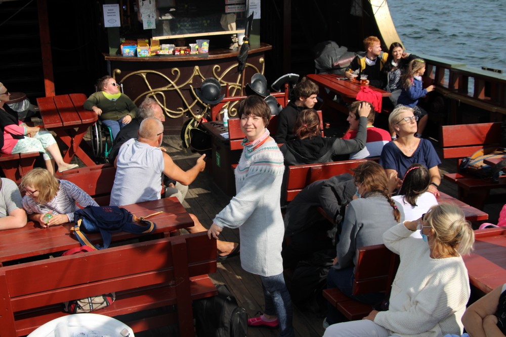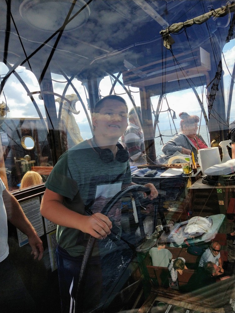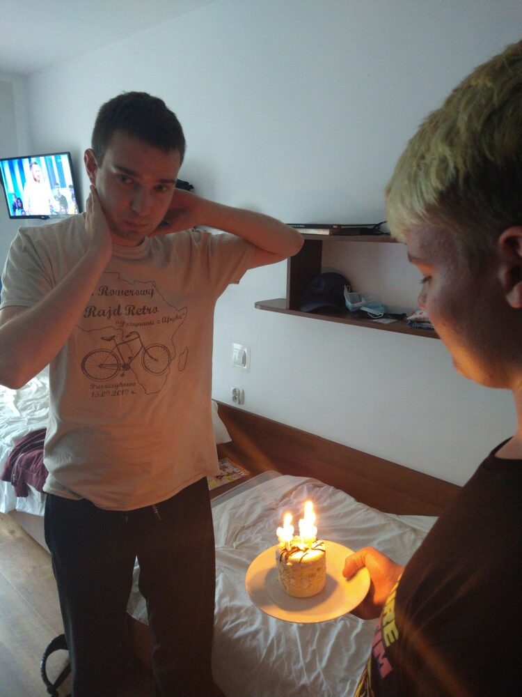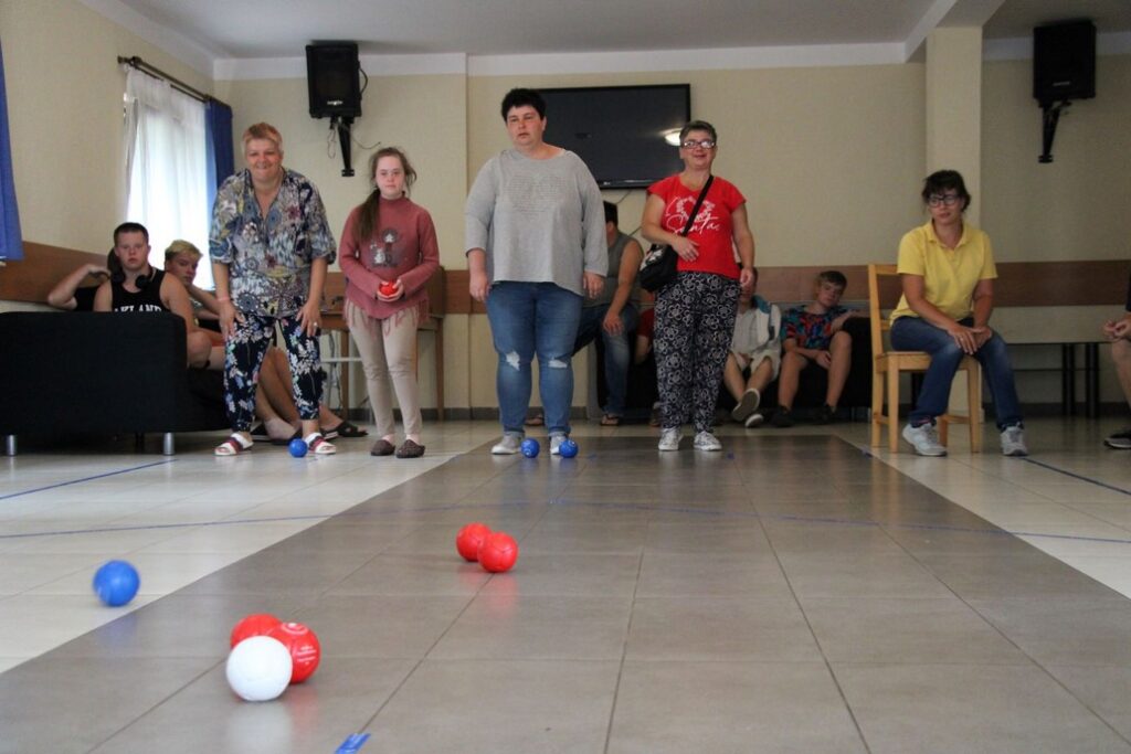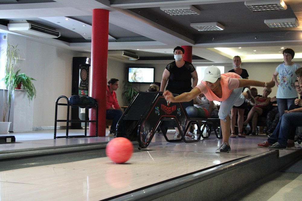 Co prawda pogoda Nas nie rozpieszczała, lecz nie pokrzyżowała planów na tyle, aby zrezygnować z kilku dni spędzonych na plaży, corocznego rejsu statkiem.Odmiennie w stosunku do roku ubiegłego, zdecydowaliśmy się na zmianę z „Króla Eryka I” na „Unicusa”. Na szczęście zmiana okrętu nie odstraszyła kilku Naszych śmiałków, Dawida, Oskara, Mateusza, Bartka oraz Rafała, którzy i w tym roku zdecydowali się na przejęcie sterów na pełnym morzu. Nie ma obozu bez integracji, a jak integracja to tylko w rytmach disco, których w tym roku nie zabrakło,gdyż mogliśmy się wytańczyć na dyskotece dwukrotnie. Ta druga pod koniec obozu była o tyle wyjątkowa, gdyż była okazją do podsumowania całego obozu, powspominania pierwszych wyjazdów do Darłówka, wręczenia pamiątkowych dyplomów uczestnictwa. Miłym zaskoczeniem okazały się pamiątkowe kubki dla uczestników z ich zdjęciem portretowym. Mamy nadzieję, że herbata wypijana z takiego kubka, pozwoli wszystkim wracać w myślach do tamtego miejsca i tamtych wspomnień, kiedy tylko najdzie Nas ochota. Wspominając wieczorne atrakcje warto nadmienić o wspólnym ogniskowaniu, kiedy to był czas na piosenki takie jak „Stokrotka” czy „Plastikowa biedronka” itp. W tym roku przy ognisku czuliśmy się jak na jakimś all inclusive, za sprawą syto zastawionego stołu, na którym królowała kiełbasa, karkówka oraz kaszanka. Kto był z Nami w roku ubiegłym, zapewne pamięta bardzo energiczny pląs „Płyną statki z bananami w siną dal”, który staraliśmy się w tym roku powtórzyć, lecz z większą precyzją oraz szybkością. Gdyby tego było mało, w tym roku poznaliśmy kolejny z kategorii ruchowych – energicznych, „La pik, za czok… . Co prawda na koniec ogniska zabrakło piosenki „Ogniska już dogasa blask”, lecz dzięki atmosferze na nim panującej, mogliśmy poczuć się jak w harcerskiej wspólnocie, gdzie przeważał uśmiech na twarzy oraz wzajemna pomoc. Jako że był to obóz sportowy, naszym planom codziennie towarzyszyły zajęcia na basenie oraz spacery rekreacyjne w najróżniejsze zakątki Darłówka oraz okolic. Udało nam się dotrzeć pieszo do Darłowa, rowerem 4 osobowym w kierunku Jarosławca. Nie ominął nas też spacer ścieżką przyrodniczą w Darłówku Zachodnim przy blasku zachodzącego słońca. Pewnego deszczowego popołudnia za sprawą Pana Tomka oraz Pana Mikołaja mogliśmy stanąć do rywalizacji niczym na najbardziej profesjonalnym turnieju gry w boccie. Były okrzyki radości ale i złości, lecz wszystkich w dobry nastrój wprowadzali dopingujący koledzy i koleżanki. Nie ma co się dziwić, że po tak zawziętej walce w boccie, postanowiliśmy wybrać się na kręgielnie przy Hotelu Jan w Darłówku. Ciekawym urozmaiceniem w tym roku była wizyta w parku rozrywki, w trakcie którego, jeździliśmy elektrycznymi samochodzikami, kręciliśmy się na breake dancer czy najbardziej zwariowanej karuzeli no limit. Kilkoro uczestników wspominało, że ten wieczór w wesołym miasteczku zapamiętają na wiele lat, gdyż była to ich najodważniejsza decyzja i pokonali tym sposobem swoje słabości.