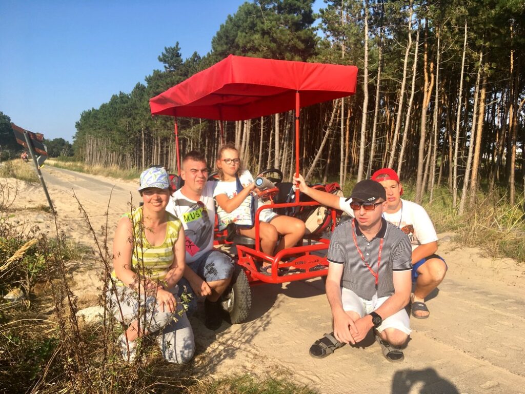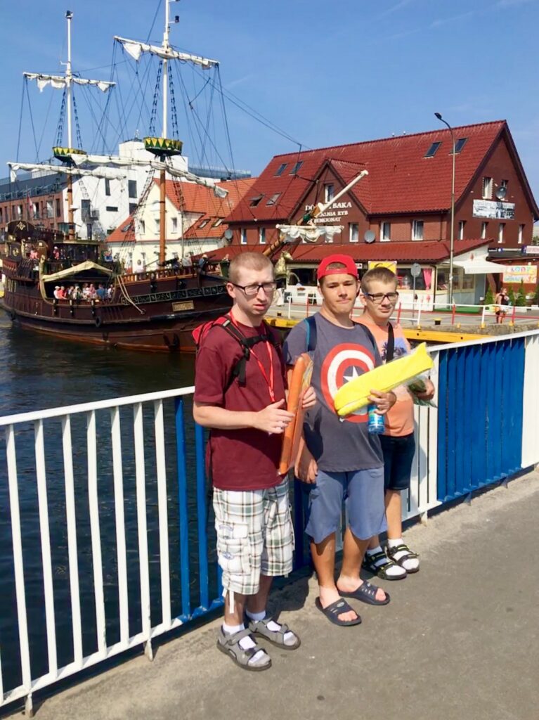 Jak odpoczywać, to tylko w Darłówku. Tradycją lat ubiegłych w ostatnim tygodniu sierpnia wybraliśmy się na obóz sportowo – rehabilitacyjny, gdzie czekało na nas wiele atrakcji, a co ważniejsze wspaniała pogoda. Znane nam doskonale Darłówko zaskoczyło nas nową ścieżką edukacyjną wzdłuż wybrzeża Darłówka Zachodniego. W tym roku postawiliśmy na aktywność fizyczną na świeżym powietrzy, dlatego dziesiątki kilometrów przedeptanych zaowocowały znalezieniem wielkiego kamienia z napisem „LOVE” niczym z piosenki zespołu Enej – Kamień z napisem Love. Zorganizowano również wycieczkę autobusową do Darłowa, ale nie byle jakim, bo „autobusem angielskim” z odsłoniętym dachem, co dostarczyło nam ogromnej frajdy. Dodatkową atrakcją przejazdu angielskim autobusem okazał się dodatkowy pasażer jakim był Minionek z bajki „Minionki rozrabiają”. Rejs statkiem pirackim „Król Eryk I” to jeden z punktów programu, który już chyba na stałe wpisał się w nasze obozowe plany, lecz w tym roku jesteśmy wyjątkowo dumni z odbytego rejsu, gdyż w rolę kapitana sterującego statkiem na pełnym morzy wcieliło się dwóch naszych obozowiczów – Bartek i Oskar. Chłopacy spisali się kapitalnie, dlatego bezpiecznie wróciliśmy do portu morskiego Darłowo. Każdy dzień spędzony nad morzem obfitował w różnego rodzaju zajęcia jak plażowanie, gra w siatkówkę, tenisa stołowego, wizyta na basenie rekreacyjnym i sportowym czy zajęcia teatralne. Dla odważnych zorganizowano przejażdżkę szybką łodziom typu RIB na pełnym morzu. Łodzie typu RIB są to bardzo szybkie motorówki wykorzystywane na całym świecie w różnorodnych akcjach przez wojsko, policję, straż graniczną czy służby ratownicze. Jak to na wakacyjnym wyjeździe, nie obyło się bez dyskoteki integracyjnej, podczas której wspólnie szaleliśmy na parkiecie przy takich utworach jak „Mama ostrzegała”, „Bo to jest miłość” czy „Ruda tańczy jak szalona”. Dla wielu z Nas wyczekanym punktem programu była wizyta w lodziarni, gdzie mogliśmy delektować się zdecydowanie najlepszymi lodami i goframi w całym Darłówku. Najwięksi miłośnicy nadmorskich łakoci poza lodami czy goframi rozkoszowali się dodatkowo pyszną kawą mrożoną oraz shake’ami o przeróżnych smakach. Wieczorne spacery przy blasku zachodzącego słońca, lampiony szczęścia, gokarty to kolejne atrakcje jakie na Nas czekały w trakcie tych kilku dni, o których moglibyśmy opowiadać godzinami. Podsumowując te 9 dni spędzone we wspólnym towarzystwie można stwierdzić, że obóz był absolutnie wyjątkowy i udany. „Przy innym ogniu w inną noc, do zobaczenia znów”, a my planujemy się spotkać w przyszłym roku na kolejnym obozie w terminie 21 – 31 sierpnia 2020 roku.