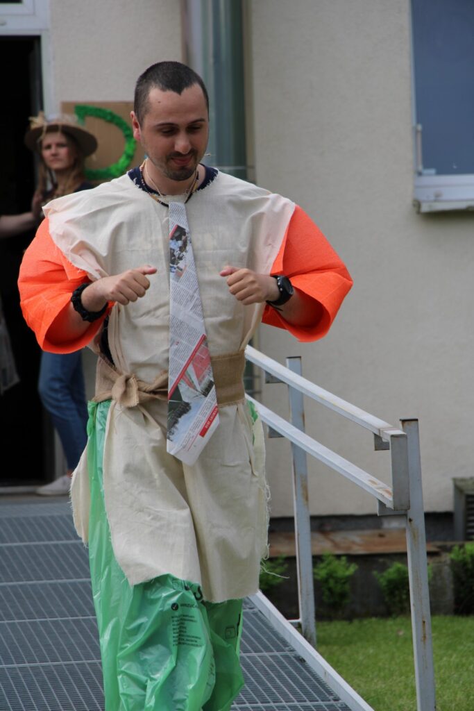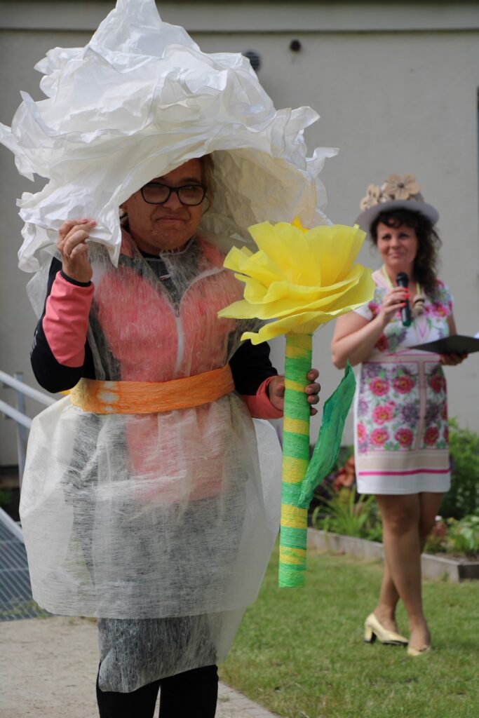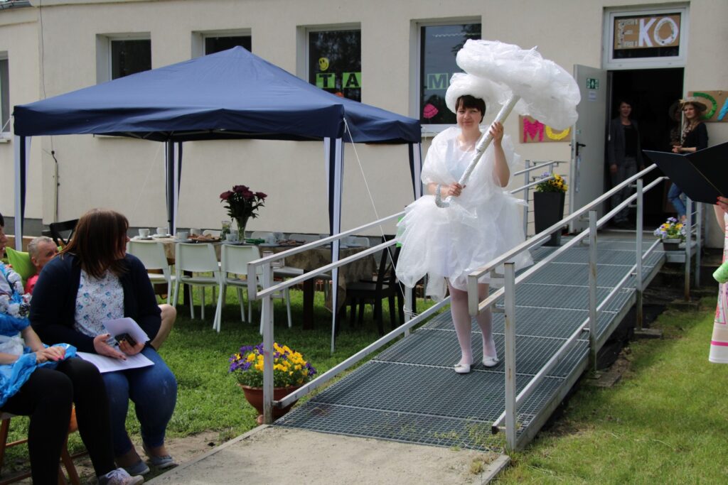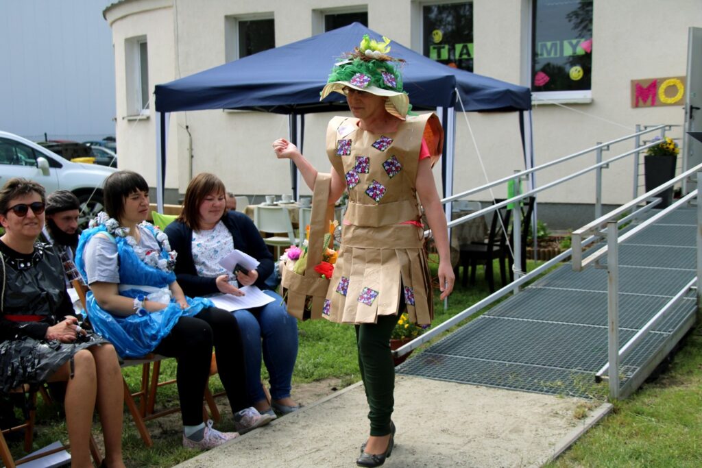 Prawdziwe modelki i prawdziwych modeli można było podziwiać w piątek 31 maja na terenie Warsztatu Terapii Zajęciowej Stowarzyszenia Pomocy Osobom Niepełnosprawnym „Wspólna Droga” w Luboniu w powiecie poznańskim. Stroje były nietypowe, bo… ekologiczne, wykonane z różnego rodzaju przedmiotów codziennego użytku jak folie, tkaniny, gazety, tektury, plastikowe butelki i inne. Ten twórczy, nowatorski projekt wymyślili uczestnicy i terapeuci tego Warsztatu, aby przypomnieć, że trzeba dbać o środowisko naturalne oraz promować pozytywne postawy ekologiczne. Realizacja projektu została sfinansowana ze środków własnych Stowarzyszenia „Wspólna Droga”. Osoby z niepełnosprawnościami pokazały potencjał swoich możliwości prezentując gościom wydarzenia własnoręcznie zrobione przebrania. Nim spotkanie się odbyło, w placówkach rehabilitacyjno-terapeutycznych na terenie powiatu poznańskiego trwało kompletowanie gadżetów, dopasowywanie, wycinanie, kle-jenie, montaż, przymiarki…„Eko-modę” prezentowali uczestnicy warsztatów terapii zajęciowej w Luboniu, Owińskach, Swarzędzu, Murowanej Goślinie, Drzązgowie i Baranowie oraz uczestnicy Domu Pomocy Maltańskiej w Puszczykowie. „Ekologom” towarzyszył kucyk o imieniu Zbój i osiołek o imieniu Karmel, z którymi osoby z niepełnosprawnościami szybko nawiązały pozytywną relację. „Eko, nie ego” – tak brzmiało jedno z haseł tego spotkania. Uczestnicy WTZ „Wspólna Droga” dostarczyli odwiedzającym wiedzy na temat szeroko pojętej ekologii. Można było dowiedzieć się m.in. w jaki sposób dać ubraniom „drugie życie” (dzięki akcjom organizowanym przez duże sklepy odzieżowe, a także dzięki inicjatywie mieszkańców miast, możliwa jest wymiana rzeczy bez ich wyrzucania, organizowane są zbiórki dla potrzebujących, a także wydarzenia adresowane do osób, które chcą „dać ubraniom drugie życie” – np. „Babi Targ” w Poznaniu). Pokazowi mody ekologicznej towarzyszyło tworzenie eko-sadzonek, prezentacja ekologicznych kosiarek, wykonywanie
