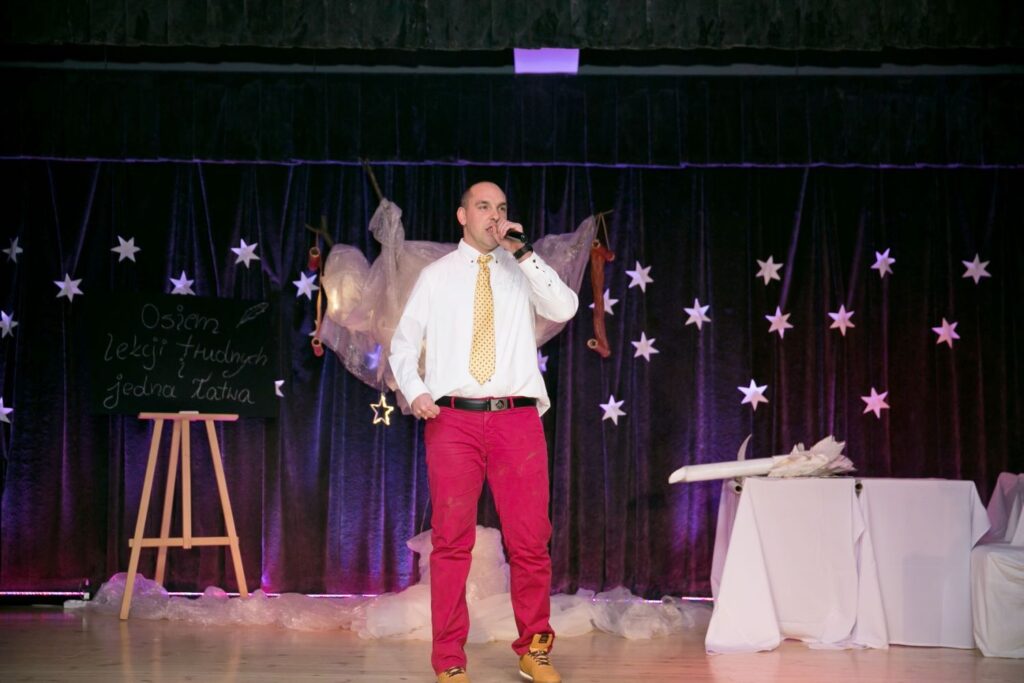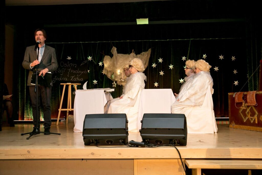 W czwartek 8 grudnia zgodnie z prawie dwudziestoletnią tradycją spotkaliśmy się w Sali Jana Pawła II w Kościele pw. Św. Józefa w Puszczykowie. Oczywiście – na „Wieczorze z Aniołami”. Uroczystość rozpoczęło przedstawienie „Pięciu Aniołach w Niebie mieszkało”. Przygotowali i zaprezentowali ją gospodarze uroczystości, aktorzy z Domu Pomocy Maltańskiej w Puszczykowie. Tym razem była to etiuda teatralna pt. „Osiem lekcji trudnych i jedna łatwa”.Tym razem — Aniołowie zasiedli w szkolnych ławkach. Jak zwykle rozprawiali o pomysłach i pragnieniach, które chcieliby ofiarować ludziom na zbliżające się święta Bożego Narodzenia.