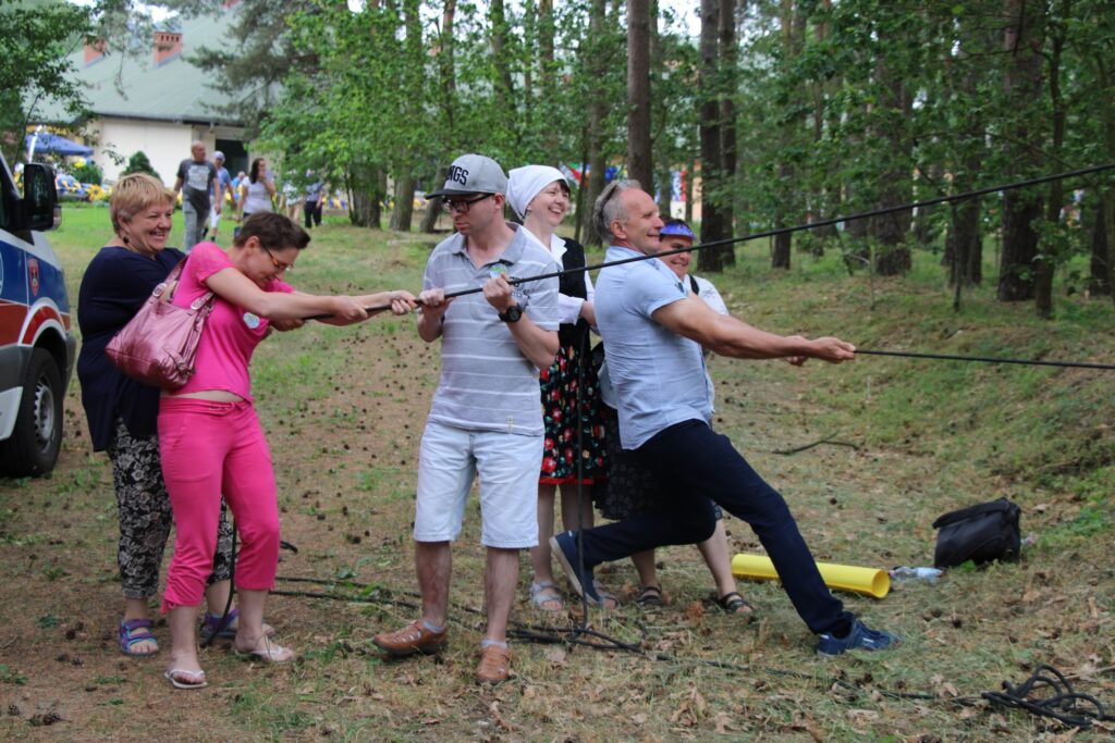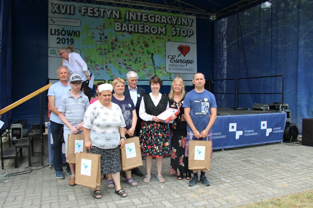Osoby z niepełnosprawnościami i w średnim wie-ku, młodzież, seniorzy. Ludzie z odmiennymi potrzebami, problemami i oczekiwaniami. Wszyscy zjednoczeni w różnorodności na terenie Domu Pomocy Społecznej w Lisówkach w powiecie poznańskim. 13 czerwca w tym właśnie miejscu zorganizowano siedemnasty już Festyn Integracyjny „Barierom Stop” o puchar starosty poznańskiego. Do Lisówek przyjechało blisko 350 osób. W zmaganiach udział wzięły 34 drużyny, tworzone przez przedstawicieli placówek terapeutycznych oraz domów pomocy społecznej z terenu powiatu poznańskiego i bardziej odległych miejscowości województwa wielkopolskiego jak Śrem czy Jarogniewice. Festyn pod wspomnianym już hasłem: „Zjednoczeni w różnorodności” związany był z przypadającą w tym roku 15 rocznicą przystąpienia Polski do Unii Europejskiej. Uczestników powitał Jan Grabkowski, starosta poznański zwracając uwagę na doniosłą rolę integracji w budowaniu społeczeństwa obywatelskiego. Przyjechały drużyny z 11 domów pomocy społecznej – między innymi drużyna z DPS w Psarskiem koło Śremu, DPS w Łężeczkach, DPS w Jarogniewicach, reprezentacje zespołów dziennych domów pomocy w Poznaniu, Dziennego Domu Pobytu „Pogodna Jesień” w Buku, Domu Dziecka w Kórniku-Bninie, warsztatów terapii zajęciowej w Konarzewie, Otuszu, Owińskach, Swarzędzu, Baranowie, Murowanej Goślinie, Pobiedziskach i Luboniu, Domu Pomocy Maltańskiej w Puszczykowie, Zakładu Opiekuńczo-Leczniczego w Śremie, Środowiskowego Domu Samopomocy w Swarzędzu. Gościem Festynu była m.in. Anna Skupień, dyrektor Oddziału Wielkopolskiego Państwowego Funduszu Rehabilitacji Osób Niepełnosprawnych, Elżbieta Tonder, Pełnomocnik Starosty Poznańskiego do spraw Osób Niepełnosprawnych, Elżbieta Bijaczewska, dyrektor Powiatowego Centrum Pomocy Rodzinie w Poznaniu, przedstawiciele organizacji pozarządowych, kierownicy placówek terapeutycznych oraz zainteresowani sprawami społecznymi mieszkańcy powiatu poznańskiego. Uczestnicy festynu najpierw zaprezentowali publiczności stroje i zwyczaje krajów jak Portugalia, Grecja, Wielka Brytania, Austria, Włochy, Polska, Francja, Chorwacja czy Dania, a następnie przystąpili do wykonywania zadań związanych z tematyką Unii Europejskiej. Była m.in. konkurencja pod nazwą „Brexit” polegająca na przeciąganiu liny, „Euro-quiz” w kinowej atmosferze, a także konkurencja „Euro-puzzle” polegająca na poznawaniu flag oraz położenia geograficznego poszczególnych państw. Był także poczęstunek w stylu europejskim (m.in. gulasz węgierski z kaszą gryczaną lub bagietkami i jabłka z polskiego sadu), dekoracje w barwach unijnych, flagi wszystkich 28 demokratycznych państw, które przystąpiły do Unii Europejskiej, obcojęzyczne napisy i drogowskazy. Podczas tegorocznej edycji festynu „Barierom Stop” wystąpiła Magdalena Tul, reprezentantka Polski w konkursie piosenki Eurowizji. Prezentacje zespołowe oceniało jury, w składzie którego zasiadł m.in. Antoni Kalisz, członek Zarządu Powiatu w Poznaniu. Wszyscy jak zwykle wykazali się pomysłowością. Pod sceną na polanie w Lisówkach można było zobaczyć m.in. słynnego hrabiego Draculę z Rumunii, znanego na całym świecie wampira z niewielkiej miejscowości Bran w Transylwanii. W rolę hrabiego Draculi wcielił się (znakomicie ucharakteryzowany) uczestnik Warsztatu Terapii Zajęciowej „Promyk” w Otuszu, który wraz z kilkoma innymi uczestnikami tej placówki prezentował właśnie Rumunię. WTZ „Promyk” w Otuszu okazał się najlepszy we wszystkich konkurencjach i otrzymał puchar starosty poznańskiego. Puchar wręczyła Elżbieta Bijaczewska oraz Antoni Kalisz. Festyn Integracyjny „Barierom Stop” to jedno z większych wydarzeń odbywających się dorocznie na terenie powiatu poznańskiego, które pokazuje, że porozumienie, wzajemna tolerancja i akceptacja są możliwe, a wspólna zabawa ludzi z różnych kręgów społecznych daje szansę na integrację oraz dostarcza niezapomnianych przeżyć.