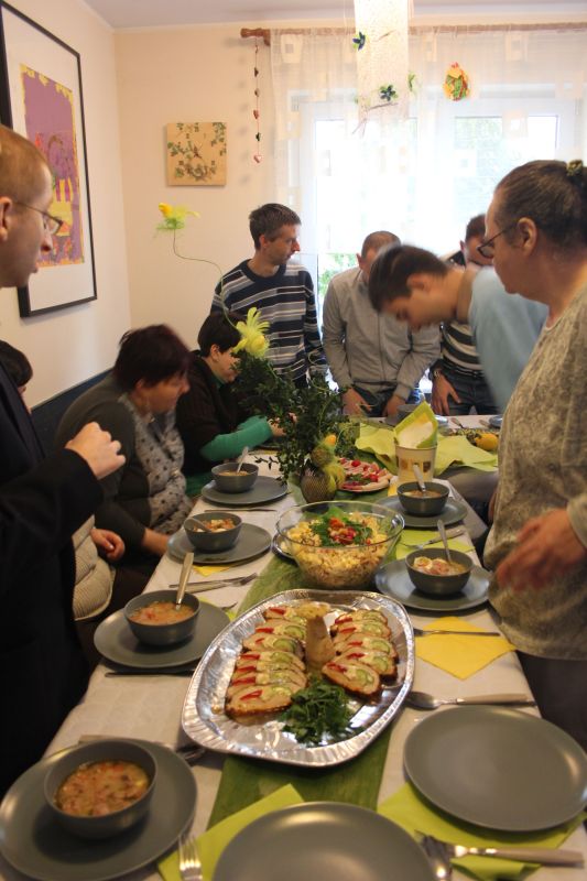 2 kwietnia zasiedliśmy wspólnie do wielkanocnego śniadania. W tym roku dołączyli do nas uczniowie puszczykowskiej szkoły podstawowej, którzy co roku przygotowują nam drobne upominki.