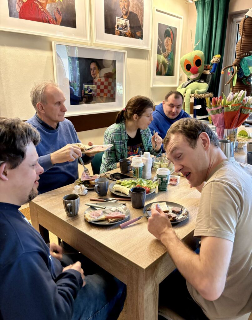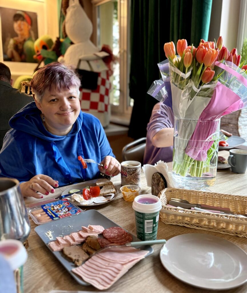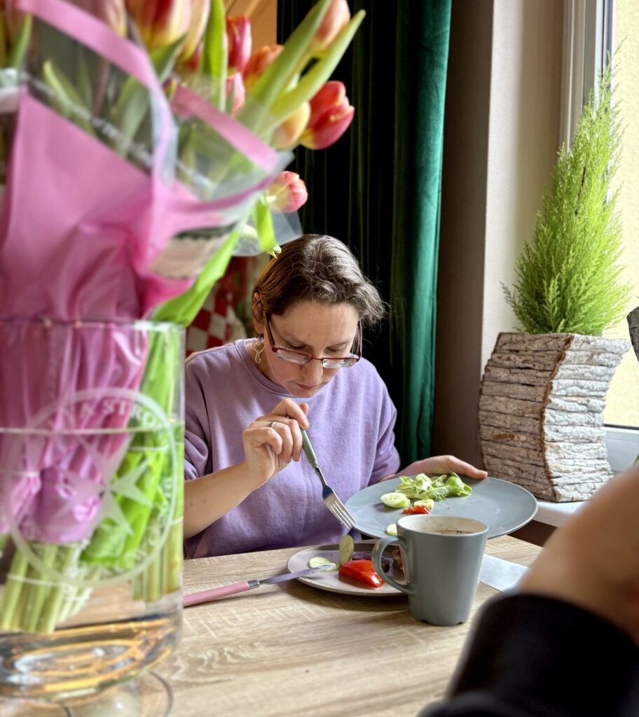 W naszym jadłospisie nie mogło zabraknąć talerza warzyw, wędlin i serów oraz pieczywa. Tomasz ugotował dla wszystkich parówki, za co należą mu się wielkie brawa. Bo to niełatwe zadanie, zwłaszcza, gdy wrzuca się je do wrzątku. Wykazał się przy tym dużą ostrożnością i przestrzegał wszystkich zasad BHP. Zobaczcie na zdjęciach jak wspaniale zaczynamy dzień w naszym Domu.