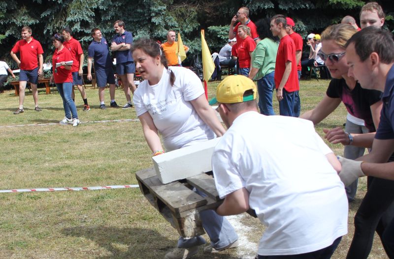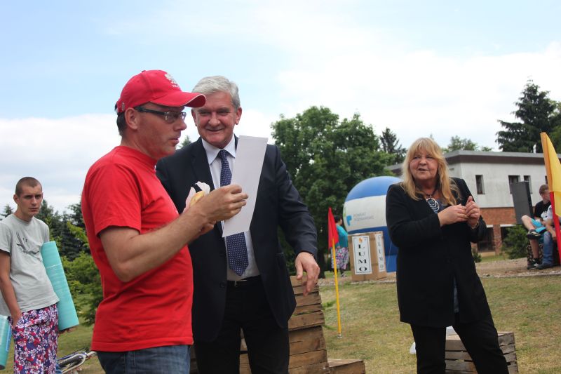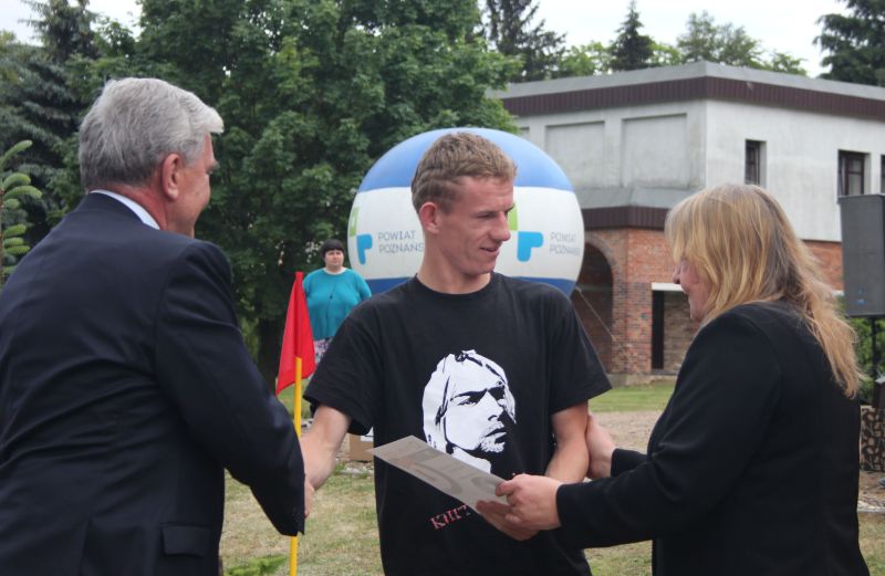 I wraz ze środowym, słonecznym i … suchym porankiem pojawił się prawdziwy wysiłek – Spacer Drwala, Dramat Barmana, Koła Apollina, Sprinter, Nosidło i Przerzucanie Opony – konkurencje, które okazały się nie tylko sprawdzianem siły i wytrzymałości fizycznej dla wielu zawodników. Aby prawdziwie zwyciężyć, nasi Siłacze musieli wykazać się niebywałą wolą walki, chęcią uczciwej i „zdrowej rywalizacji”, pragnieniem pokonania swoich indywidualnych ograniczeń, a nawet własnej niemocy… Pomimo wszystko i wbrew wszystkiemu! Osoby kibicujące nie mogły oprzeć się wrażeniu, że sportowcy naprawdę dali z siebie wszystko! Kilka „wywrotek” zostało zaliczonych; kilka plastrów zostało założonych; kilka dotychczasowych rekordów zostało poprawionych. W konkurencji Przerzucanie Opony młodzież z Jastrowia okazała się niezrównana! (poprawiła nawet swój ubiegłoroczny rekord), natomiast w konkurencji Nosidło debiutanci z Murowanej Gośliny naprawdę pokazali, na co Ich stać!! Były łzy szczęścia i łzy rozpaczy – niczym w olimpijskich zmaganiach… Normalne życie sportowca… Wzloty i upadki, z którymi trzeba umieć się zmierzyć… Wszystkie ekipy – niezależnie od stopnia wycieńczenia, mogły wypróbować swych sił w konkurencjach zdecydowanie rozrywkowych – czekały na nich : Rodeo Kiełbasa, Gladiator, Siłomierz Kopacz i Siłomierz Młot. Kilka minut dla relaksu… Przez cały czas trwania Zawodów Malta Strong – Nasi Siłacze mogli liczyć na rewelacyjny doping i coś dla regeneracji sił – ciasto oraz na prawdziwy poznański „ konkretny obiad”. Wreszcie nadszedł moment szczególnie oczekiwany – sędziowie ogłosili wyniki! Przecież każdy chciał wygrać, każdy chciał być najlepszy i najsilniejszy!! Każdy dał z siebie wszystko….,a może jeszcze więcej. Uroczystego wręczenia nagród dokonał Pan Andrzej Balcerek – Burmistrz Miasta Puszczykowo oraz Pani Elżbieta Bijaczewska – Dyrektor Powiatowego Centrum Pomocy Rodzinie w Poznaniu.