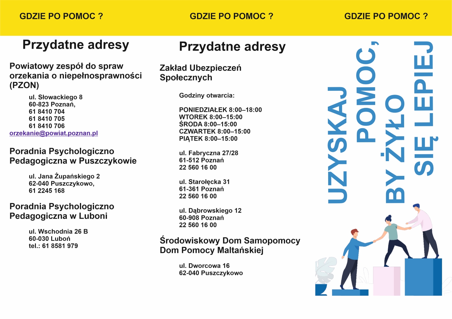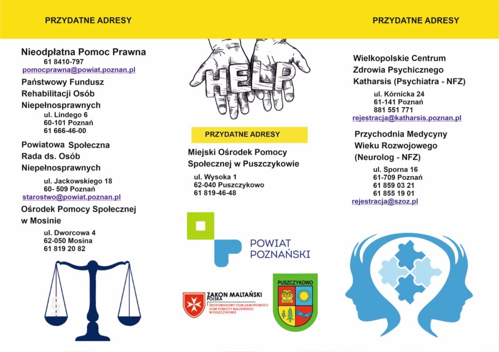 Zachęcamy Państwa do zapoznania się z projektem nowej ulotki z przydatnymi danymi kontaktowymi placówek, które świadczą wsparcie osobom z niepełnosprawnościami i nie tylko.