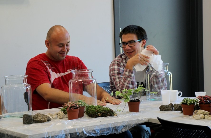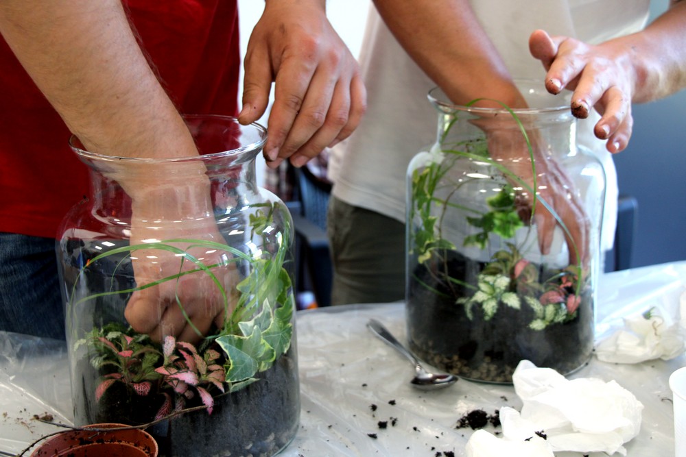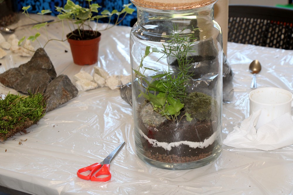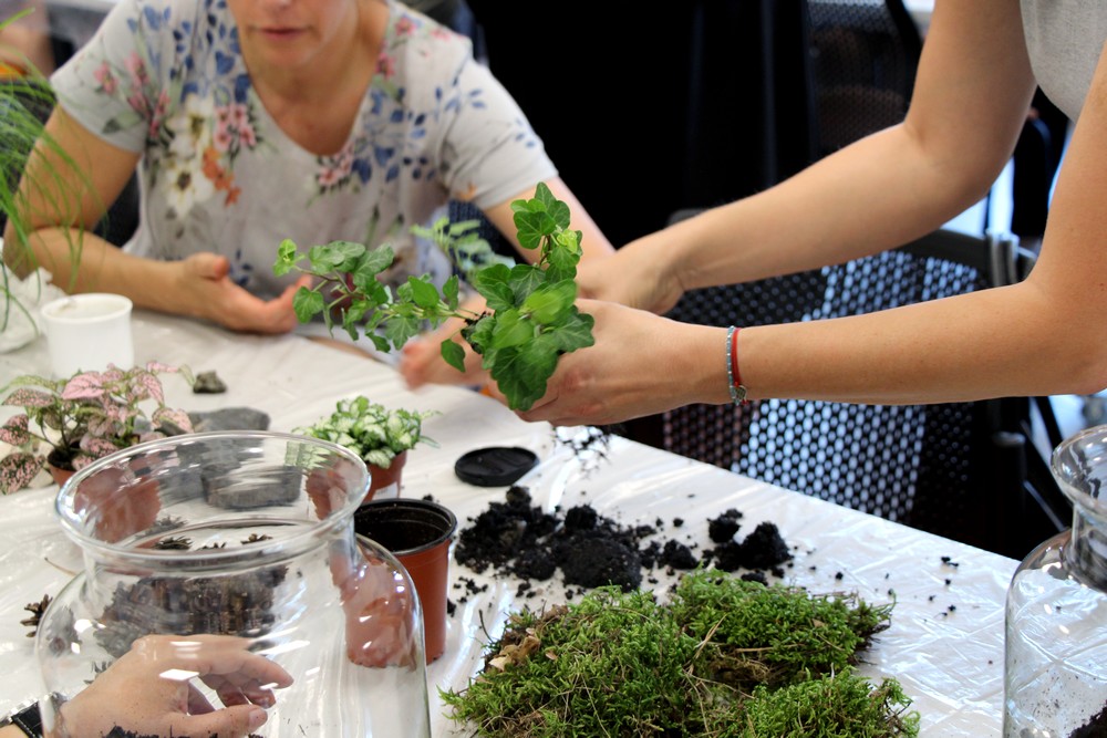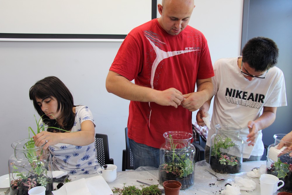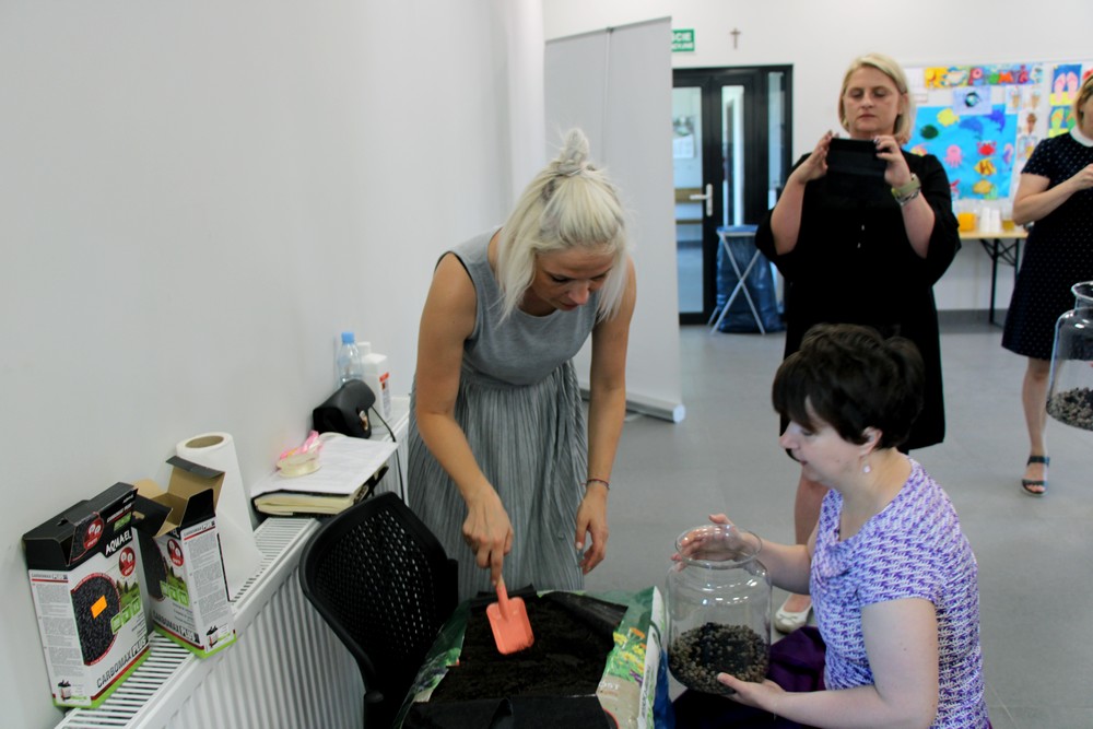 zostawić otwarte i cieszyć się swoim mini lasem. Oprócz Nas były jeszcze 3 grupy z różnych placówek. Warsztaty prowadziła florystka ,która ciekawie opowiadała o różnych roślinach . Nauczyliśmy się , że samemu można roić różne kompozycje rośliny w różnych ciekawych szklanych naczyniach . Inspirujące okazało się to, że można takimi kompozycjami obdarować bliskie osoby tak pomysłowym prezentem. Warto dodać, że był to dla nas miło spędzony czas.