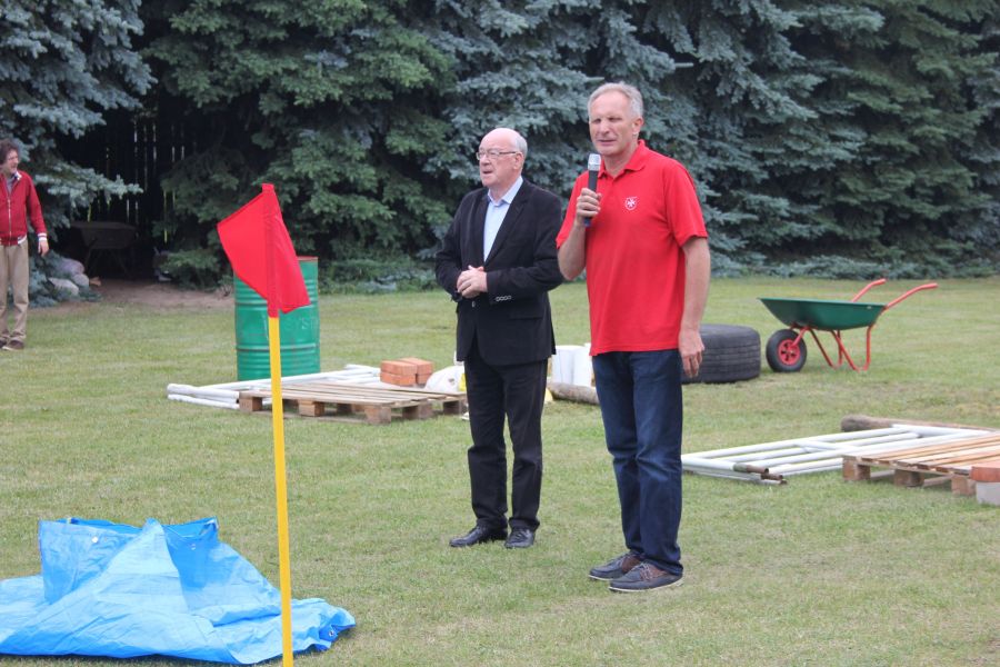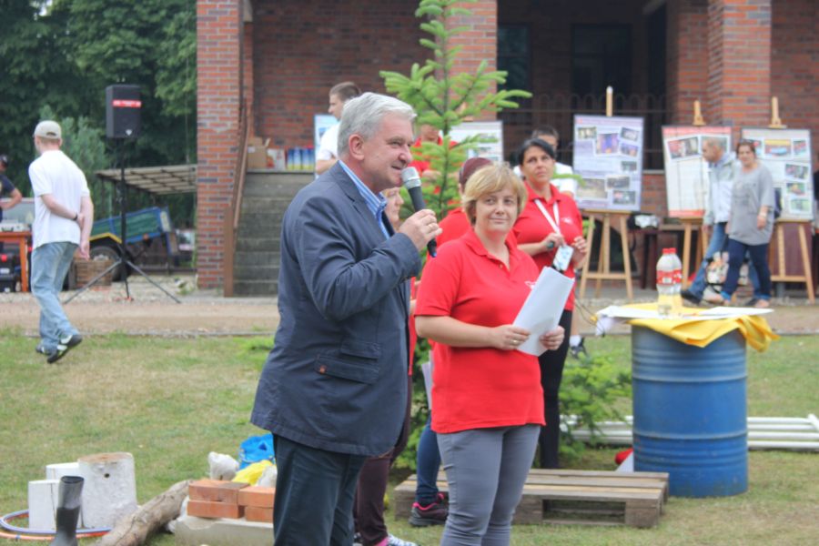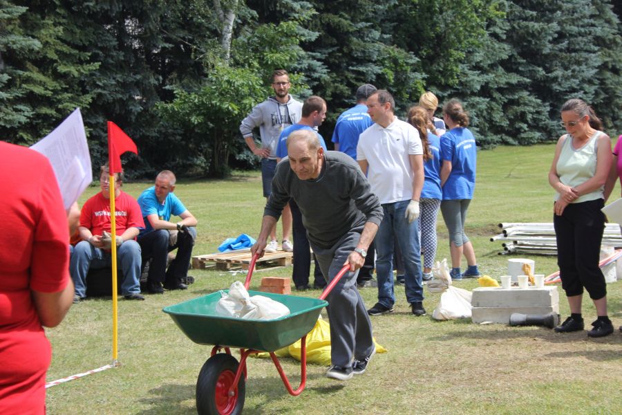 Po południu Szef, pan Jurek przywiózł kółko od taczki, która „doznała ciężkiej kontuzji” podczas ćwiczeń konkurencji budowania wałów. Atmosfera na placu jest tak gorąca, że nawet sprzęty odmawiają powoli posłuszeństwa!!