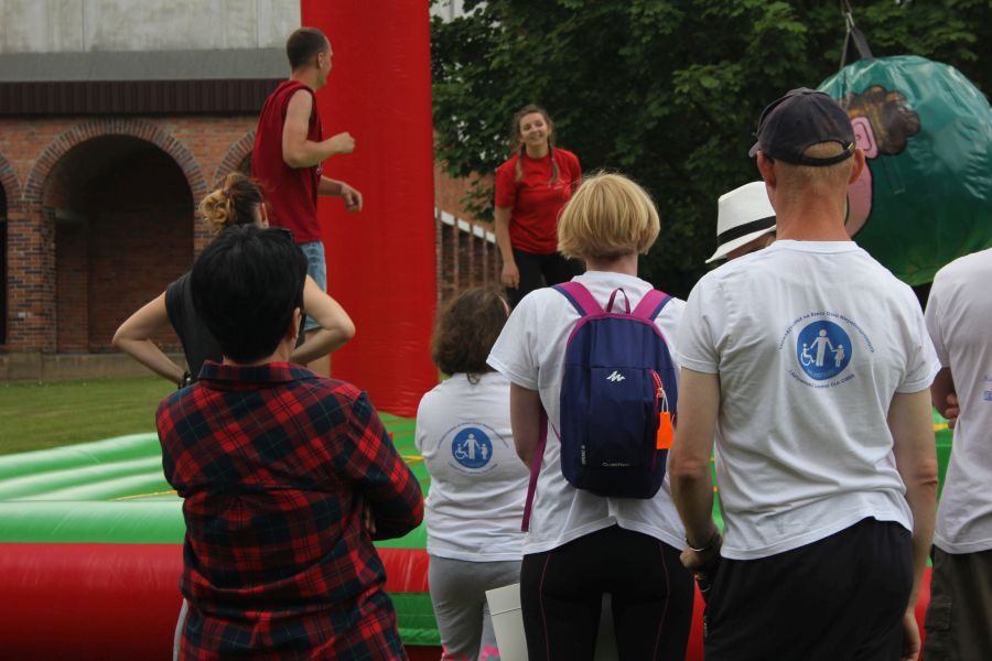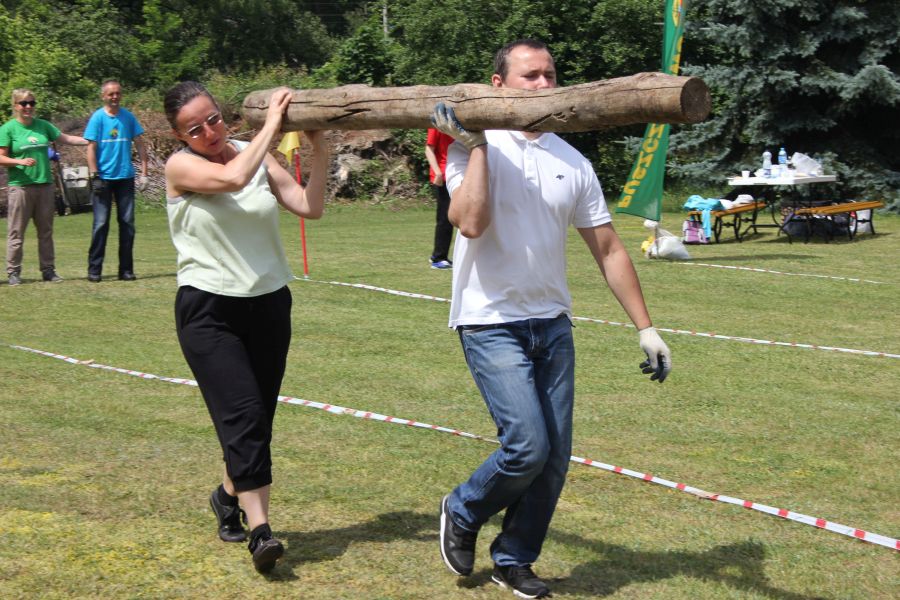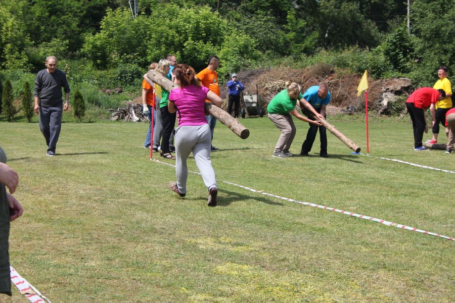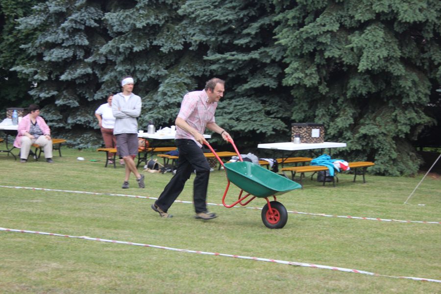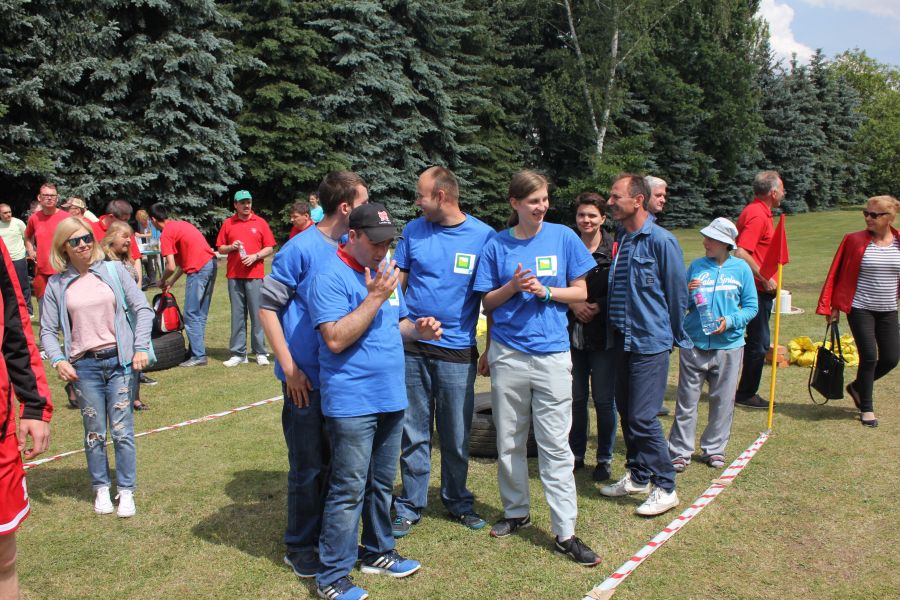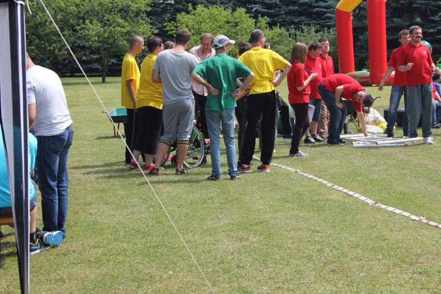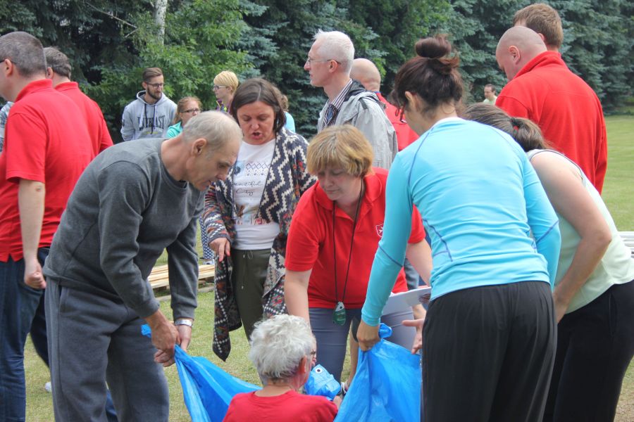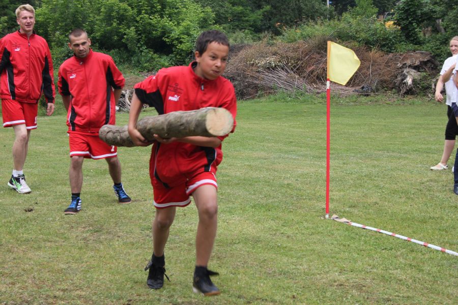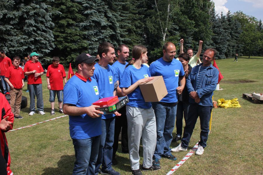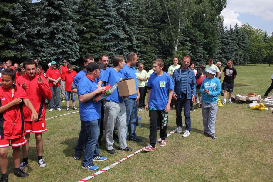 W pierwszej konkurencji – „Ślizgiem po trawie” zawodnicy transportowali swojego najlżejszego kolegę z zespołu – na specjalnym ślizgaczu wykonanym z folii! )