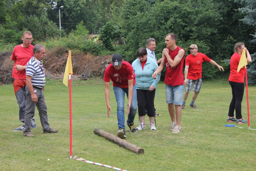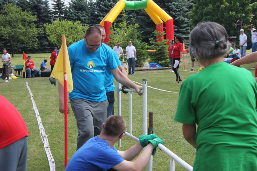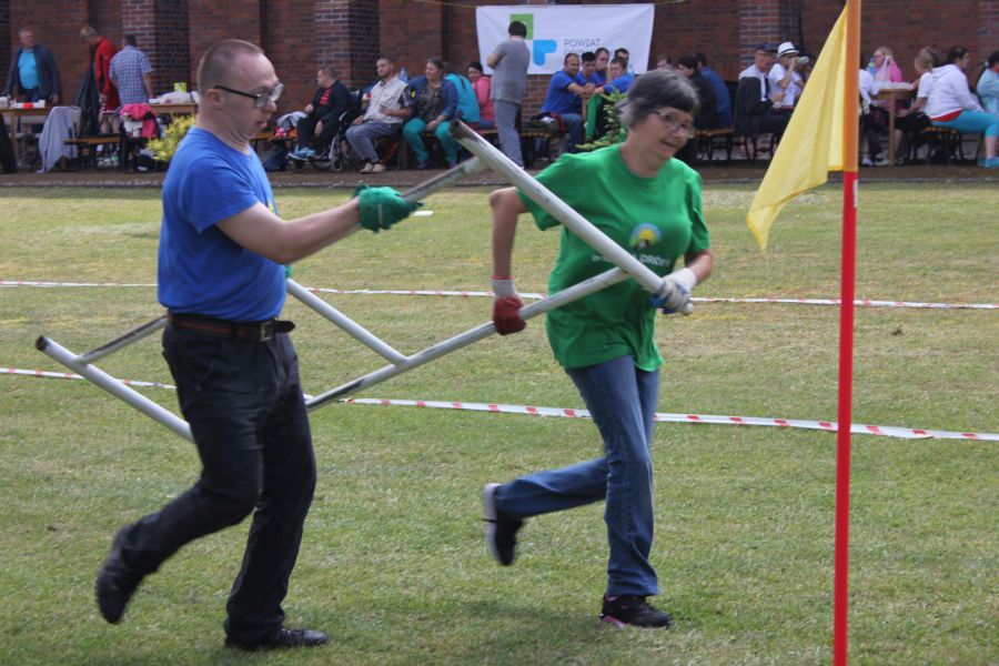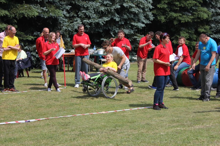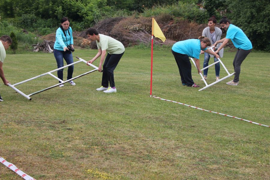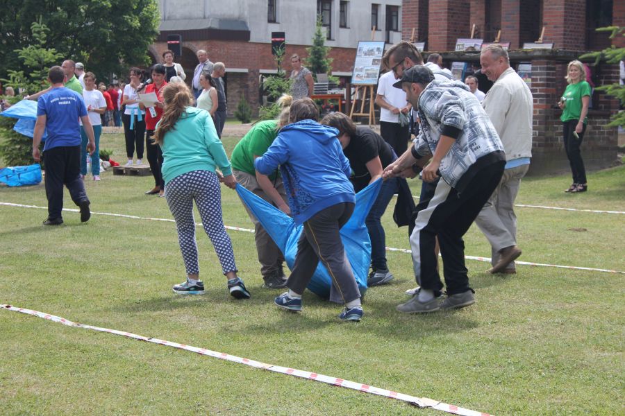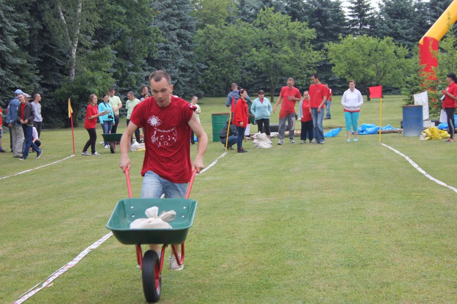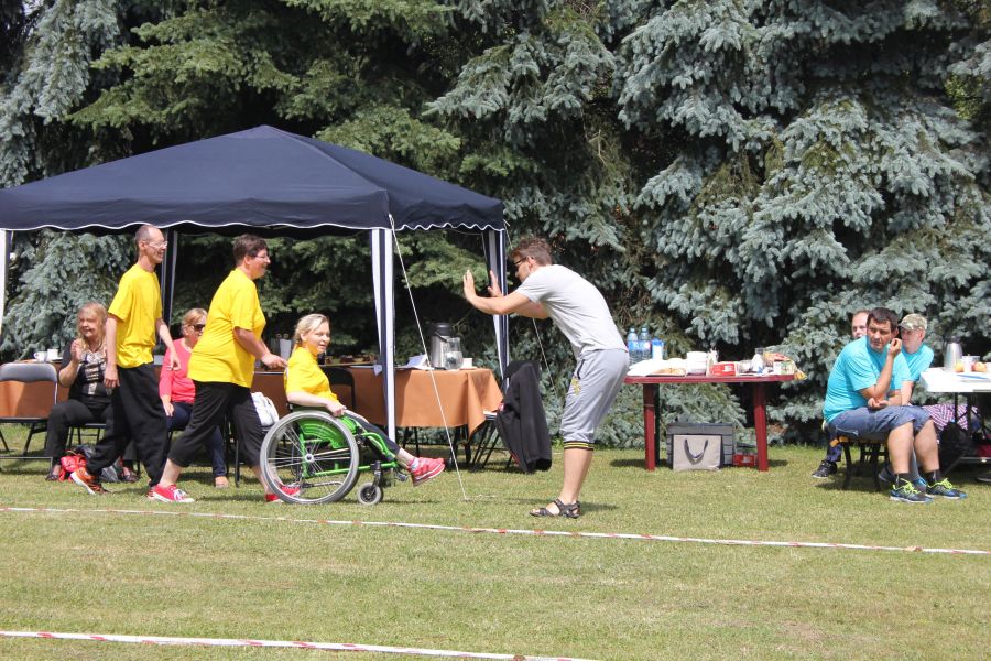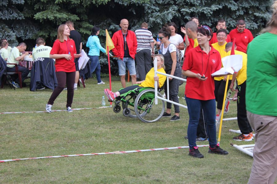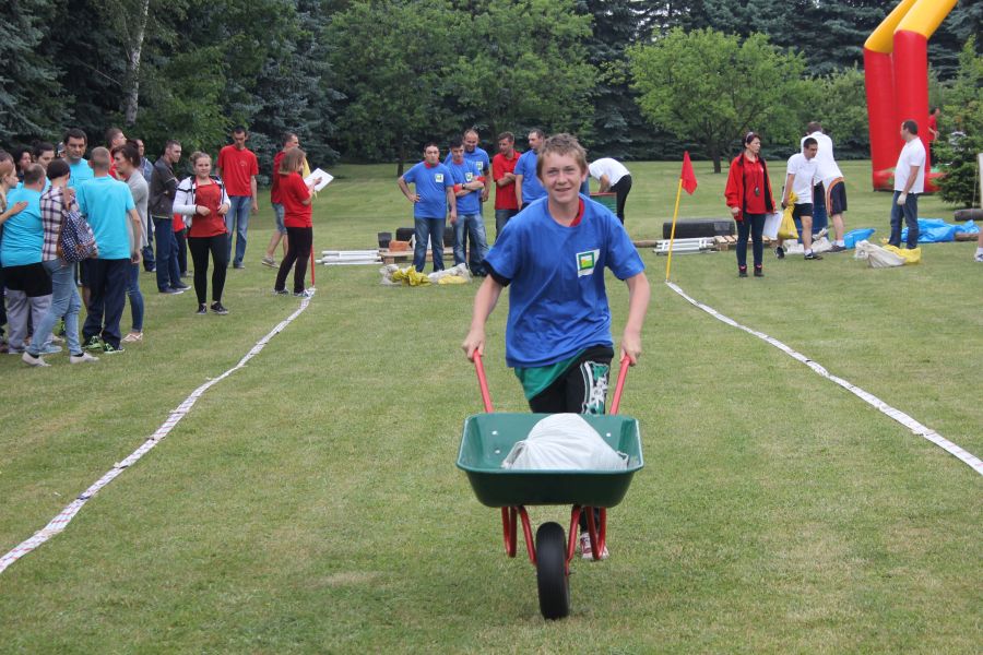W pierwszej konkurencji – „Ślizgiem po trawie” zawodnicy transportowali swojego najlżejszego kolegę z zespołu – na specjalnym ślizgaczu wykonanym z folii! )