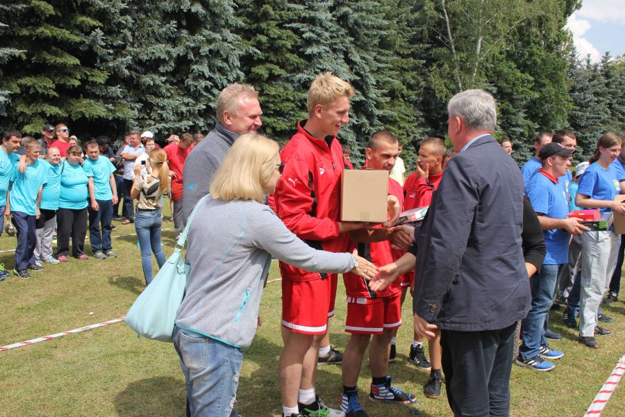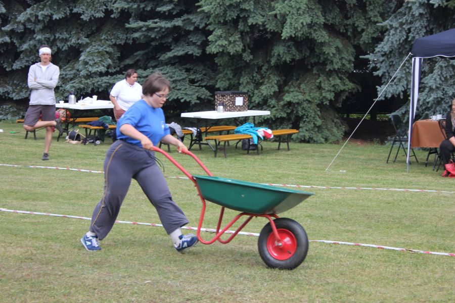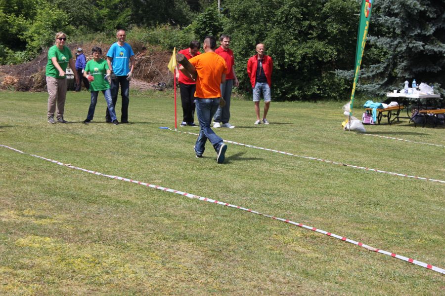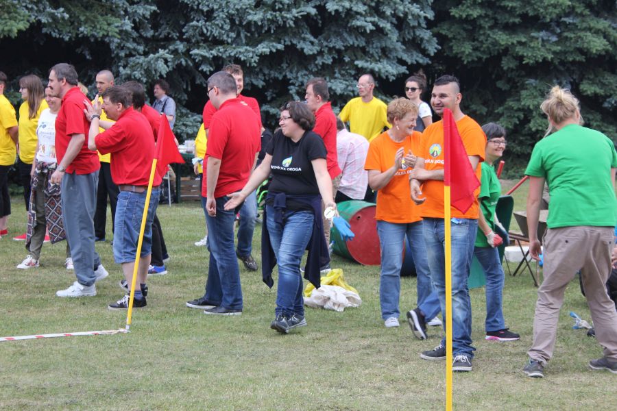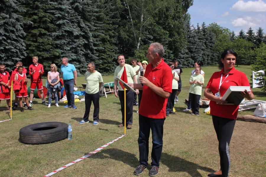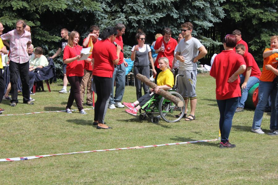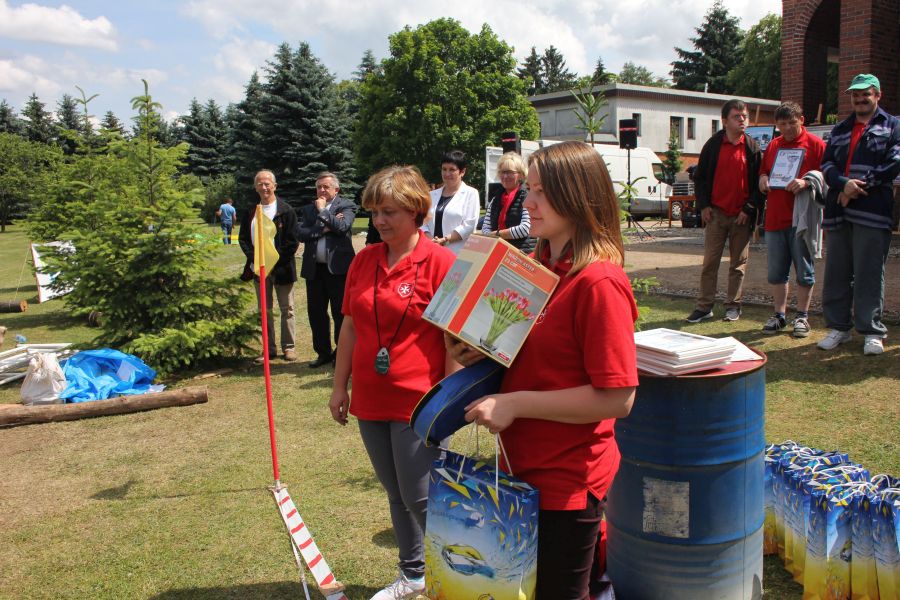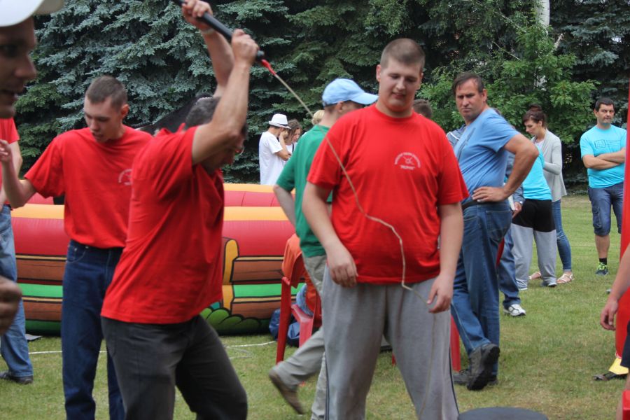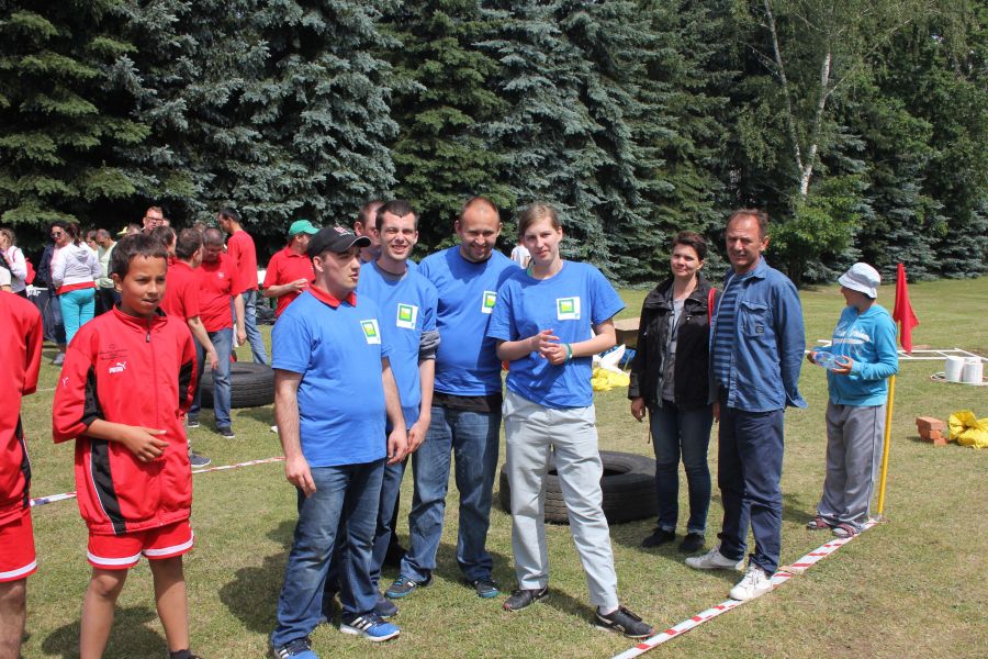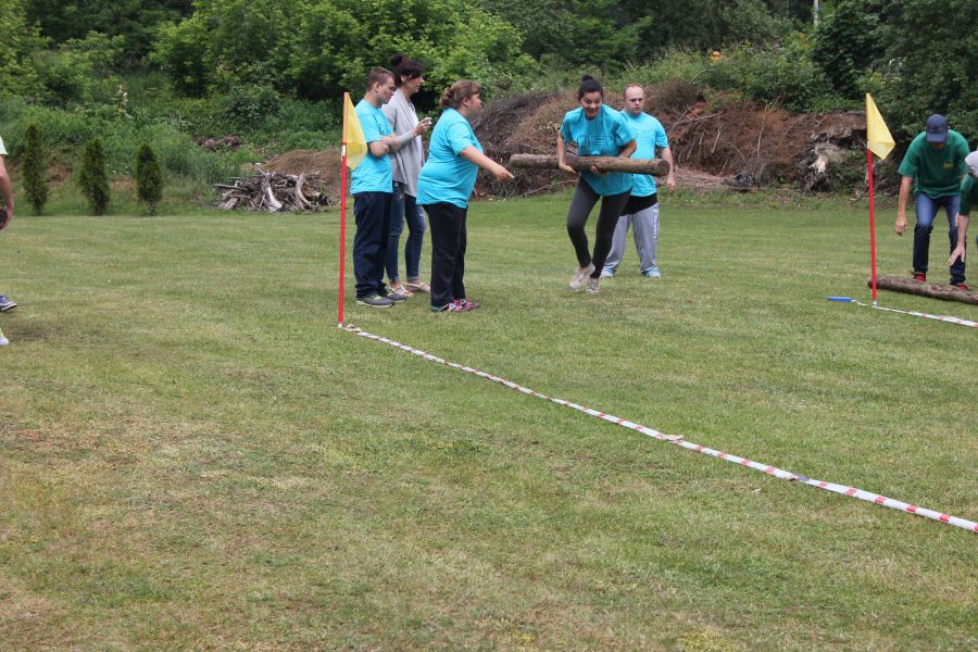 W pierwszej konkurencji – „Ślizgiem po trawie” zawodnicy transportowali swojego najlżejszego kolegę z zespołu – na specjalnym ślizgaczu wykonanym z folii! )