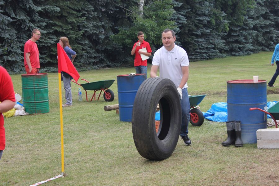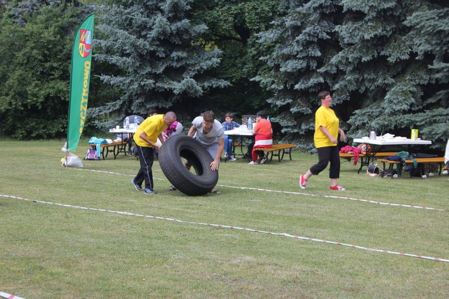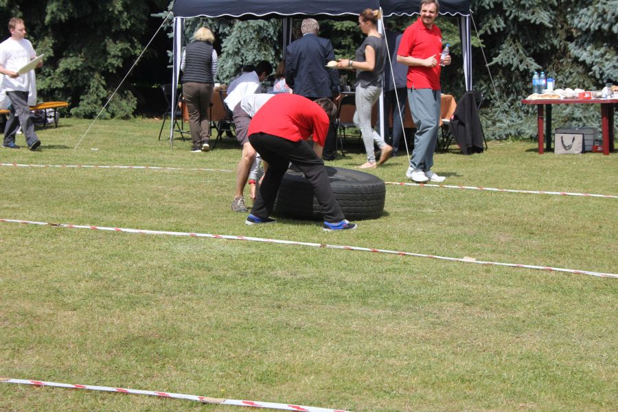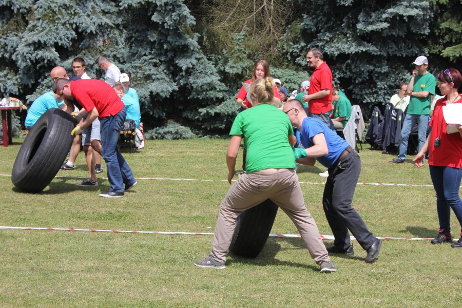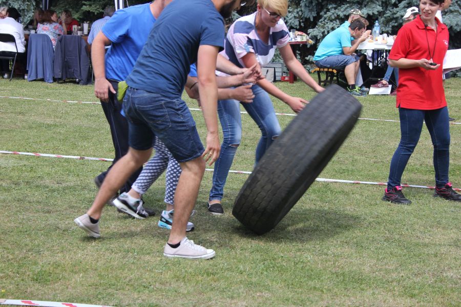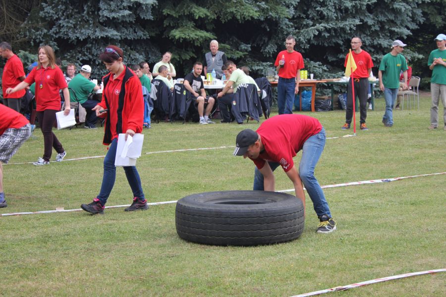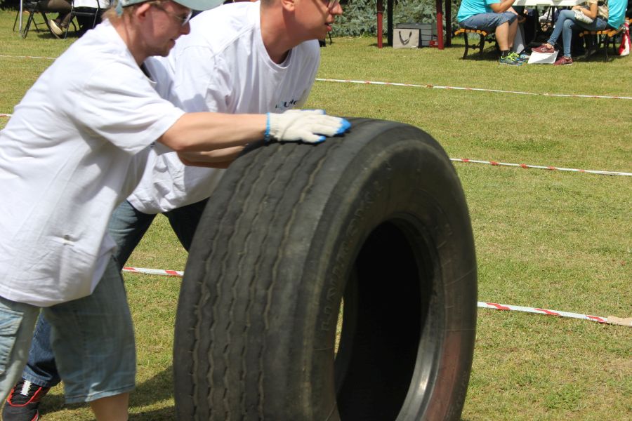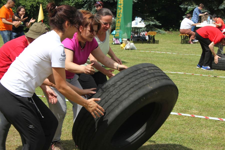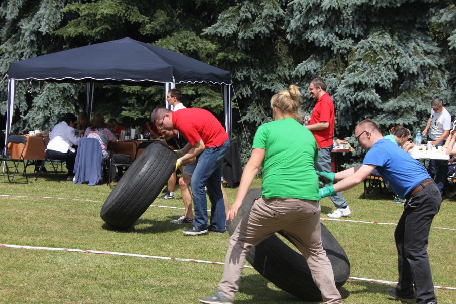 „Wisienką na torcie” okazała się konkurencja związana z przerzucaniem opony od samochodu ciężarowego! Jeśli ktoś myśli, że to proste, łatwe i przyjemne – zapraszamy za rok!