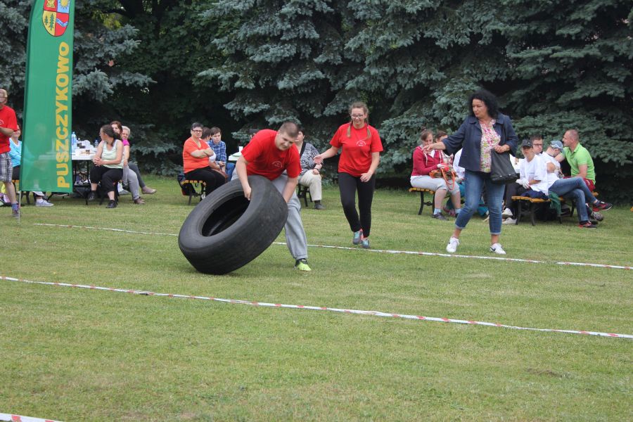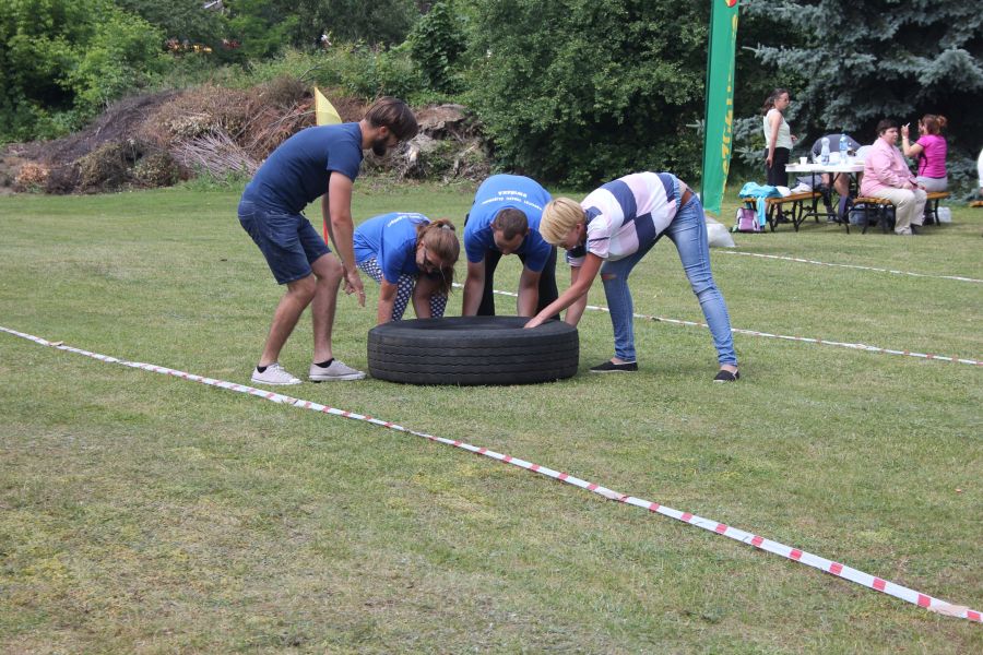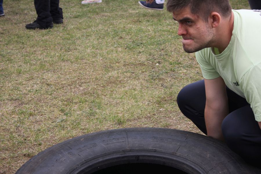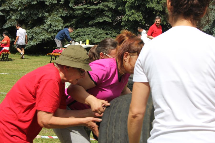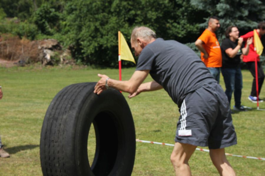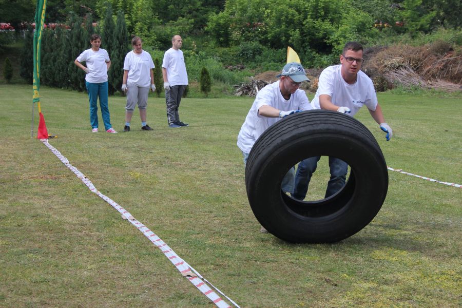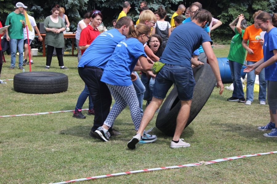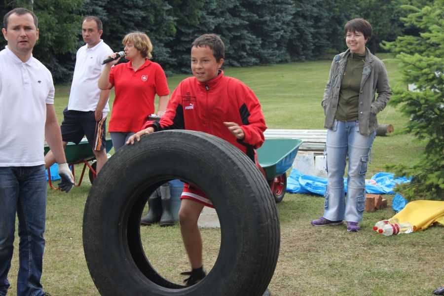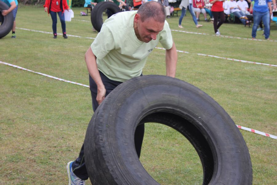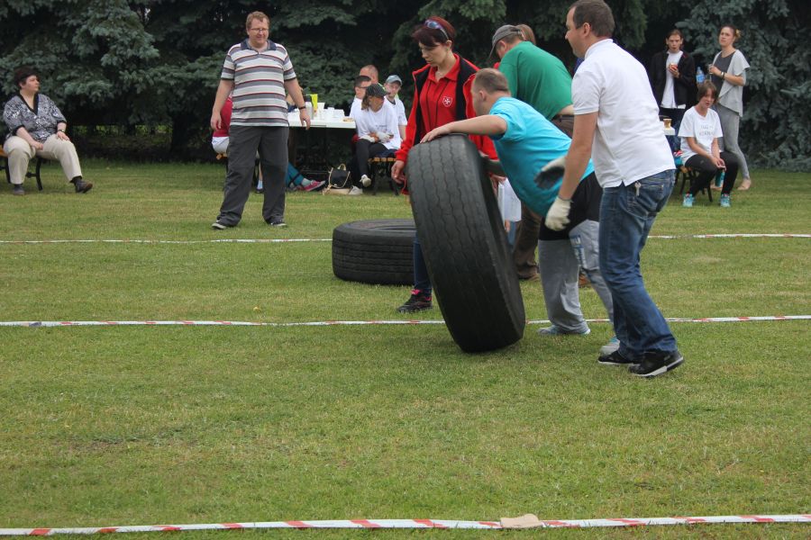 „Wisienką na torcie” okazała się konkurencja związana z przerzucaniem opony od samochodu ciężarowego! Jeśli ktoś myśli, że to proste, łatwe i przyjemne – zapraszamy za rok!
