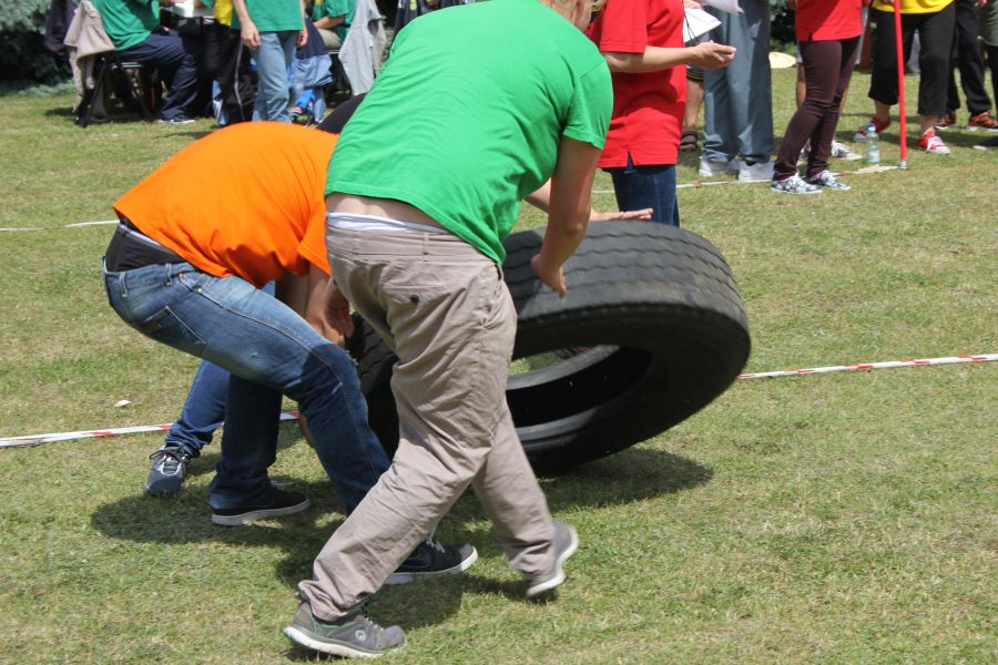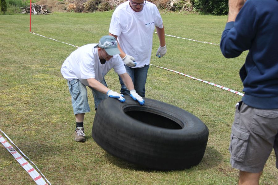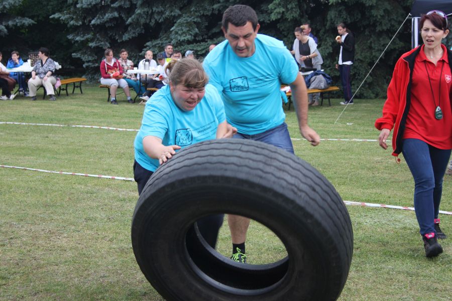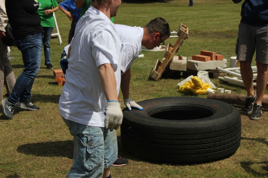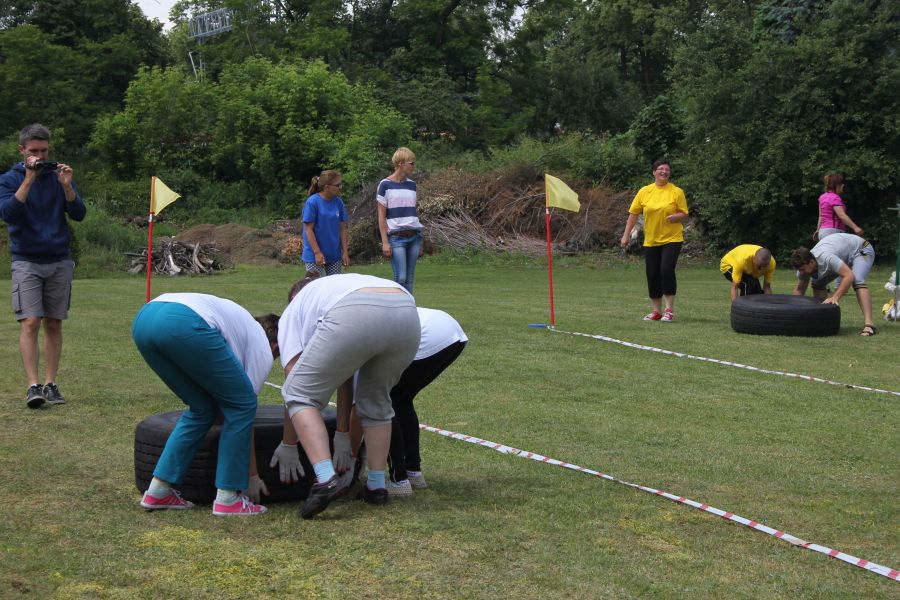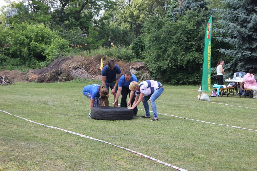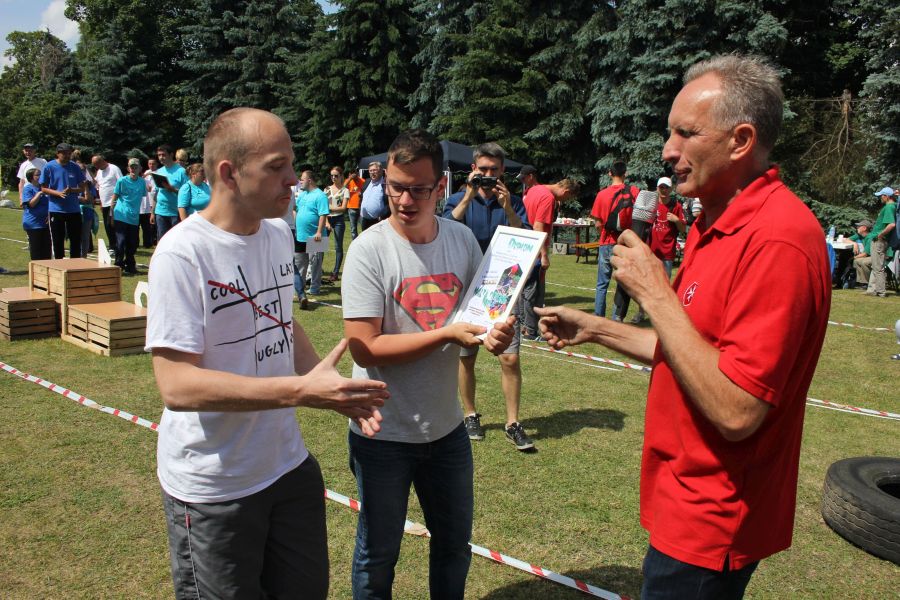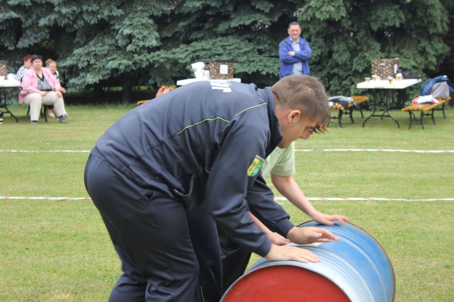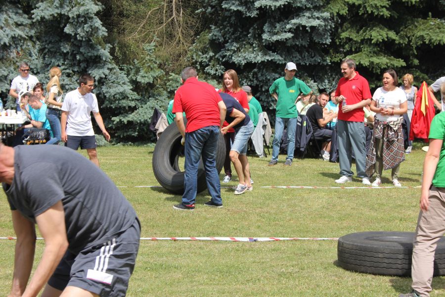 „Wisienką na torcie” okazała się konkurencja związana z przerzucaniem opony od samochodu ciężarowego! Jeśli ktoś myśli, że to proste, łatwe i przyjemne – zapraszamy za rok!