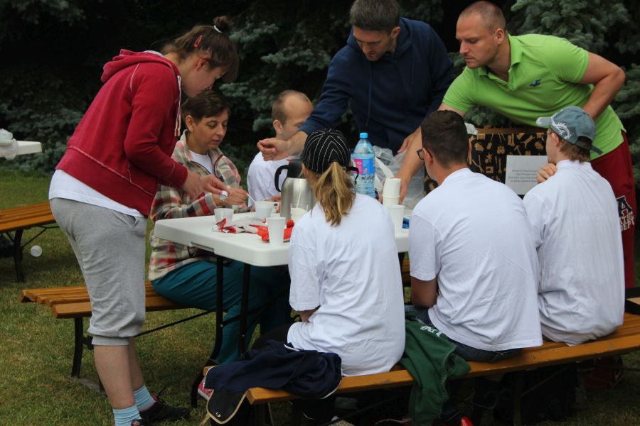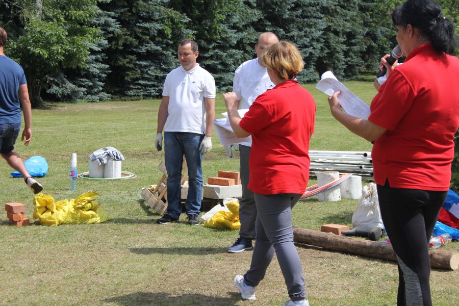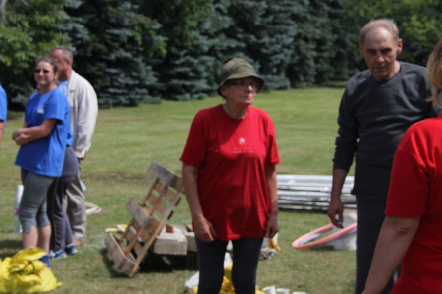 Po obiedzie przenosiliśmy wszystkie sprzęty na plac. Roboty nadal DUUUŻO! Pogoda na razie dopisuje. Wszystkie dziewczyny (które totalnie nie zajmują się konkurencjami siłowymi) właśnie zapowiedziały nam, że czwartek będzie „pogodowo przyzwoity”!