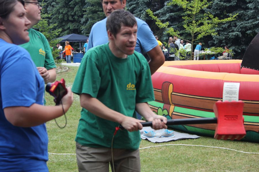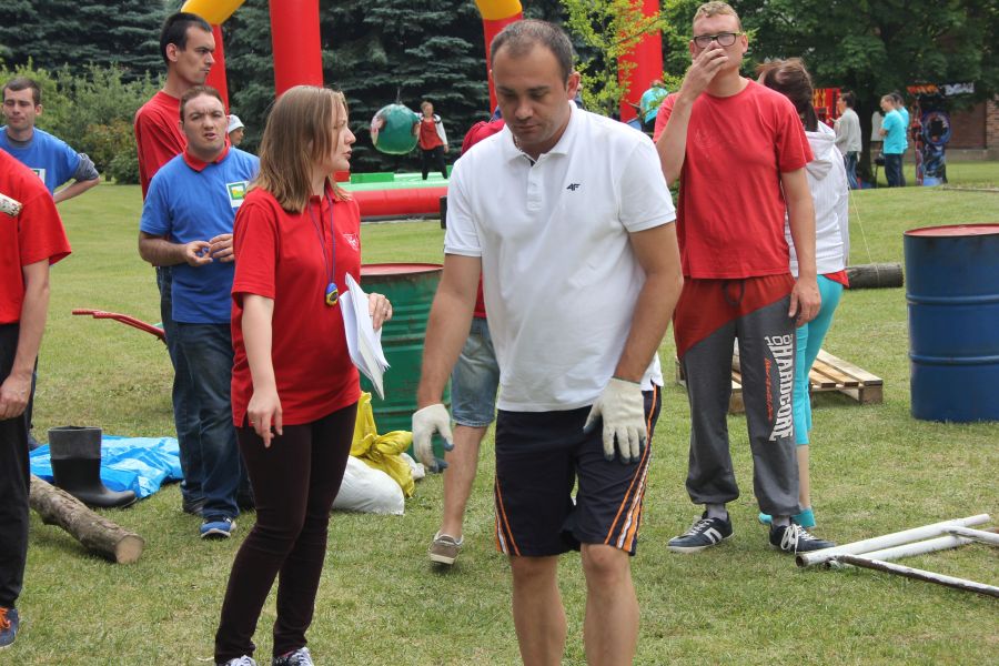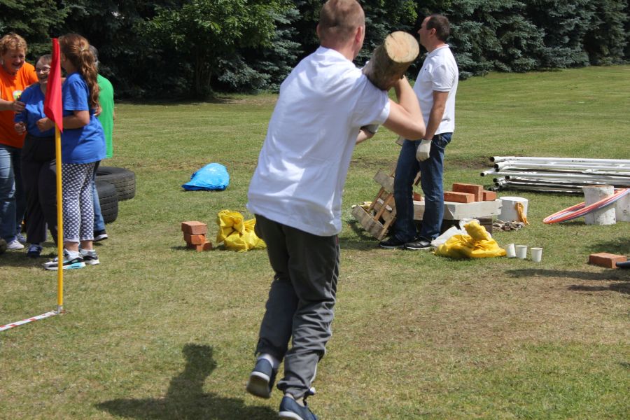 Dalej niestety było…już tylko gorzej! Niełatwo jest biegać z drewnianym, ciężkim kołkiem, ustawić rusztowania murarskie, być Mega Drwalem…